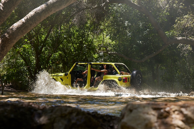 The Wrangler and the Bronco are heralded as off-road SUVs. However, only the Wrangler is truly Trail Rated®. And with good reason. The Wrangler features our legendary 4x4 drivetrains, making it easy for you to explore the toughest terrain without batting an eye. When you're ready to explore the off-roads in a way that will satisfy your curiosity and wanderlust, the Wrangler is the perfect vehicle for you.
