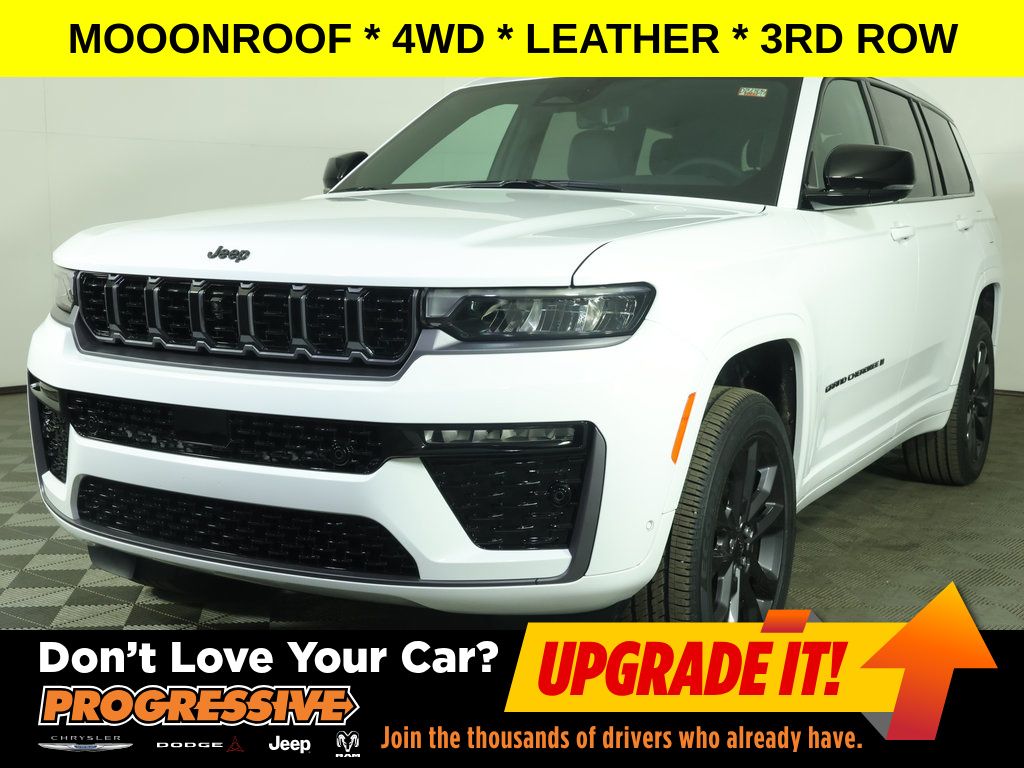 Bright White Clearcoat 2026 Jeep Grand Cherokee L Limited 4WD 8-Speed Automatic 2.0L I4 PDI Turbocharged DOHC 16V LEV3-SULEV30 324hp ** Adaptive Cruise Control, ** All-Wheel Drive, ** Alloy Wheels / Premium Wheels, ** Apple CarPlay/Android Auto, ** Automatic Emergency Braking, ** Backup Camera, ** Blind Spot Monitor, ** Cooled Seats, ** Cross Traffic Alert, ** Four-Wheel Drive / 4X4, ** Heated Seats, ** Heated Steering Wheel, ** Keyless Entry, ** Keyless Start, ** Lane Departure Warning, ** Leather Seats, ** Navigation System, ** Panoramic Roof / Sunroof, ** Premium Sound System / Premium Audio, ** Rear Cross Traffic Alert, ** Remote Start, ** Satellite Radio, ** Stability Control, ** Steering Wheel Controls, ** Sunroof/Moonroof, ** Third Row Seating / 3rd Row Seating, ** USB Port, ** WiFi Hotspot, 3rd row seats: split-bench, 4-Wheel Disc Brakes, 4G LTE Wi-Fi Hot Spot, ABS brakes, Active Noise Control System, Air Conditioning, AM/FM radio: SiriusXM with 360L, Anti-whiplash front head restraints, AppLink/Apple CarPlay and Android Auto, Audio memory, Auto High-beam Headlights, Auto-Dimming Exterior Driver Mirror, Automatic temperature control, Brake assist, Compass, Delay-off headlights, Driver vanity mirror, Dual front impact airbags, Dual front side impact airbags, Dual-Pane Panoramic Sunroof, Electronic Stability Control, Emergency communication system, Four wheel independent suspension, Front Bucket Seats, Front Center Armrest w/Storage, Front dual zone A/C, Front fog lights, Front reading lights, Fully automatic headlights, Garage door transmitter, Global Telematics Box Module (TBM), Gloss Black Roof Rails, Google Android Auto, Heated door mirrors, Heated Exterior Mirrors, Heated front seats, Heated rear seats, Heated steering wheel, Illuminated entry, Integrated Center Stack Radio, Integrated Off-Road Camera, Interior Rear Facing Camera, Knee airbag, Limited Reserve, Low tire pressure warning, Manual Fold Seatbacks, Manual Folding Exterior Mirrors, Memory seat, Memory Steering Column, Nappa Leather Door Trim, Nappa Leather Seats, Navigation System, Occupant sensing airbag, Outside temperature display, Overhead console, Panic alarm, ParkSense Front/Rear Park Assist with Stop, ParkView Rear Back-Up Camera, Passenger vanity mirror, Passive Entry - Front/Rear Doors, Liftgate, Power door mirrors, Power driver seat, Power Fold Seatbacks, Power Liftgate, Power passenger seat, Power Tilt/Telescope Steering Column, Power windows, Quick Order Package 2CR Limited Reserve, Radio: Uconnect 5 Nav with 12.3" Display, Rain Sensitive Windshield Wipers, Rear air conditioning, Rear Back Up Camera Washer, Rear window defroster, Rear window wiper, Rearview Autodim Digital Display Mirror, Reclining 3rd row seat, Remote keyless entry, Security system, Side Distance Warning, Speed control, Speed-Sensitive Wipers, Split folding rear seat, Steering wheel mounted audio controls, Surround View Camera System, Tachometer, Telescoping steering wheel, Tilt steering wheel, Traction control, Trip computer, Turn signal indicator mirrors, Upper Grille Texture C, USB Host Flip, Variably intermittent wipers, Ventilated Front Seats, Voltmeter, Wheels: 20" x 8.5" Black Painted Aluminum, Wireless Charging Pad.