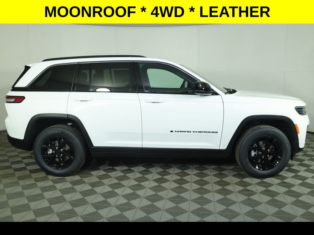 Bright White Clearcoat 2026 Jeep Grand Cherokee Laredo Altitude 4WD 8-Speed Automatic 2.0L V6 SMPI Turbocharged DOHC 24V LEV3-SULEV30 293hp ** Adaptive Cruise Control, ** All-Wheel Drive, ** Alloy Wheels / Premium Wheels, ** Apple CarPlay/Android Auto, ** Automatic Emergency Braking, ** Backup Camera, ** Blind Spot Monitor, ** Cross Traffic Alert, ** Cruise Control, ** Four-Wheel Drive / 4X4, ** Heated Seats, ** Heated Steering Wheel, ** Keyless Entry, ** Keyless Start, ** Lane Departure Warning, ** Leather Seats, ** Navigation System, ** Panoramic Roof / Sunroof, ** Premium Sound System / Premium Audio, ** Rear Cross Traffic Alert, ** Remote Start, ** Satellite Radio, ** Stability Control, ** Steering Wheel Controls, ** Sunroof/Moonroof, ** USB Port, ** WiFi Hotspot, 115V Auxiliary Power Outlet, 240 Amp Alternator, 3.70 Rear Axle Ratio, 4-Wheel Disc Brakes, 4G LTE Wi-Fi Hot Spot, ABS brakes, Active Driving Assist System, Active Noise Control System, Air Conditioning, Alloy wheels, AM/FM radio: SiriusXM, Anti-whiplash front head restraints, AppLink/Apple CarPlay and Android Auto, Automatic temperature control, Brake assist, Capri Leatherette/Suede Seats, Compass, Connected Travel and Traffic Services, Connectivity - US/Canada, Delay-off headlights, Disassociated Touchscreen Display, Driver vanity mirror, Dual Exhaust Tips, Dual front impact airbags, Dual front side impact airbags, Electronic Stability Control, Emergency communication system, Exterior Accents Dark Neutral Metallic, Four wheel independent suspension, Front Bucket Seats, Front Center Armrest w/Storage, Front dual zone A/C, Front Fascia Upper A, Fully automatic headlights, Google Android Auto, GPS Antenna Input, HD Radio, Heated door mirrors, Heated Exterior Mirrors, Heated Front Seats, Heated Steering Wheel, Heavy-Duty Engine Cooling, Illuminated entry, Integrated Center Stack Radio, Integrated Voice Command with Bluetooth, Intersection Collision Assist System, Knee airbag, Laredo Altitude Appearance Package, Low tire pressure warning, Manual Folding Exterior Mirrors, Navigation System, Occupant sensing airbag, Outside temperature display, Overhead console, Panic alarm, ParkView Rear Back-Up Camera, Passenger vanity mirror, Power door mirrors, Power driver seat, Power Liftgate, Power Sunroof, Power windows, Quick Order Package 2BB Laredo Altitude, Radio: Uconnect 5 Nav with 12.3" Display, Rain Sensitive Windshield Wipers, Rear Fascia Upper A, Rear reading lights, Rear window defroster, Rear window wiper, Remote keyless entry, Remote Start, Secondary Active Grille Shutters, Security system, Selec-Terrain System, Selectable Tire Fill Alert, SiriusXM with 360L, Speed control, Speed-Sensitive Wipers, Split folding rear seat, Steering wheel mounted audio controls, Tachometer, Telescoping steering wheel, Tilt steering wheel, Traction control, Traffic Sign Recognition, Trip computer, USB Host Flip, Variably intermittent wipers, Voltmeter, Wheels: 18" x 8.0" Fully Painted Aluminum 1, Wireless Charging Pad.