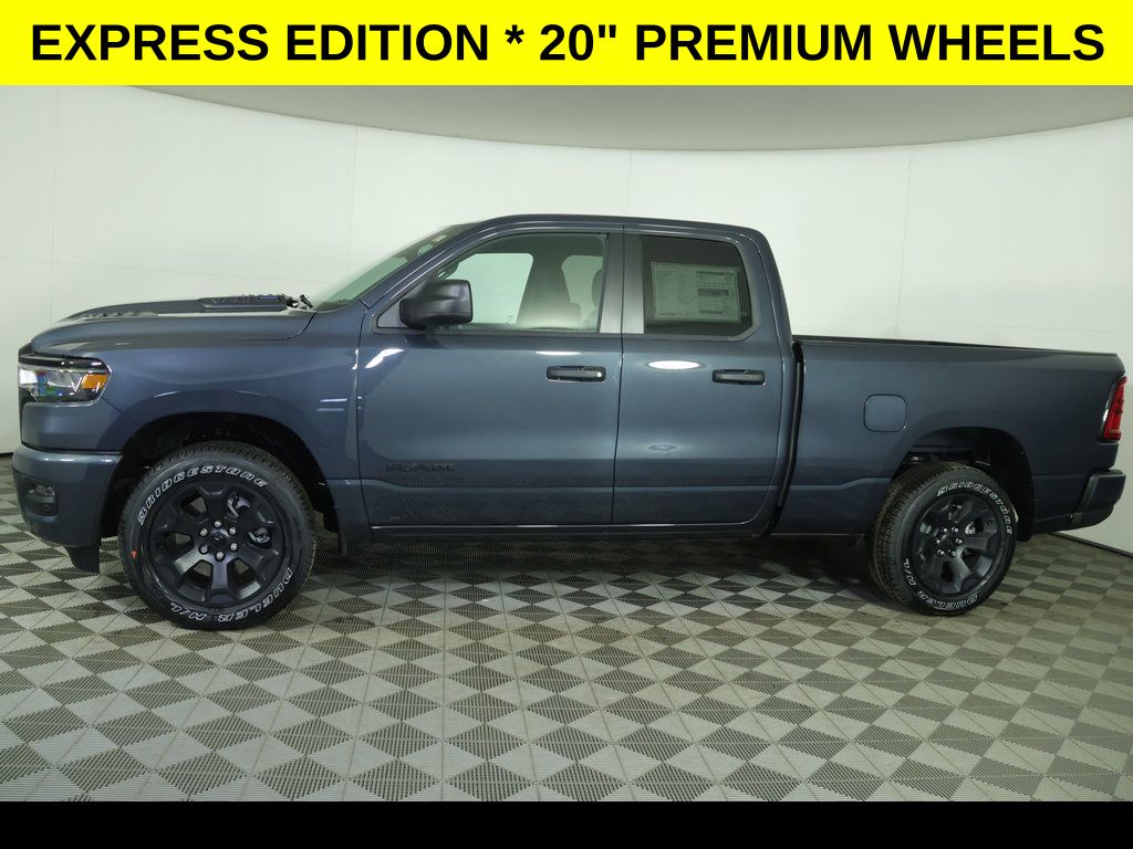 Forged Blue Metallic 2026 Ram 1500 Express 4WD 8-Speed Automatic 3.6L V6 24V VVT ** Adaptive Cruise Control, ** All-Wheel Drive, ** Alloy Wheels / Premium Wheels, ** Apple CarPlay/Android Auto, ** Automatic Emergency Braking, ** Backup Camera, ** Blind Spot Monitor, ** Cross Traffic Alert, ** Cruise Control, ** Four-Wheel Drive / 4X4, ** Keyless Entry, ** Keyless Start, ** Premium Sound System / Premium Audio, ** Rear Cross Traffic Alert, ** Remote Start, ** Satellite Radio, ** Stability Control, ** Steering Wheel Controls, ** Tow Hitch / Trailer Hitch, ** USB Port, ** WiFi Hotspot, 2nd Row in Floor Storage Bins, 4-Wheel Disc Brakes, 4G LTE Wi-Fi Hot Spot, 6 Speakers, ABS brakes, Air Conditioning, AM/FM radio, Anti-Spin Differential Rear Axle, Apple CarPlay/Android Auto, Auto High-beam Headlights, Black Express Edition, Black Interior Accents, Brake assist, Bucket Seats, Center Console Parts Module, Cloth Bucket Seats, Cluster 7" TFT Color Display, Compass, Delay-off headlights, Dual front impact airbags, Dual front side impact airbags, Electronic Stability Control, Exterior Mirrors with Heating Element, Front and Rear Floor Mats, Front Center Armrest, Front Center Seat Cushion Storage, Front LED Fog Lamps, Front reading lights, Front wheel independent suspension, Full Length Floor Console, Fully automatic headlights, Global Telematics Box Module, Google Android Auto, GPS Antenna Input, Heated door mirrors, Illuminated entry, Integrated Voice Command with Bluetooth, Low tire pressure warning, Occupant sensing airbag, Outside temperature display, Overhead console, Panic alarm, ParkView Rear Back-Up Camera, Passenger vanity mirror, Power door mirrors, Power windows, Quick Order Package 23D Express, Radio data system, Radio: Uconnect 5 with 8.4" Display, Rear Folding Seat, Rear Power Sliding Window, Rear step bumper, Remote keyless entry, SiriusXM Radio Service, SiriusXM Satellite Radio, Speed control, Sport Performance Hood, Tachometer, Telescoping steering wheel, Tilt steering wheel, Traction control, Tradesman Level 1 Equipment Group, USB Host Flip, Variably intermittent wipers, Voltmeter, Wheels: 20" x 9" Aluminum Painted Clad.