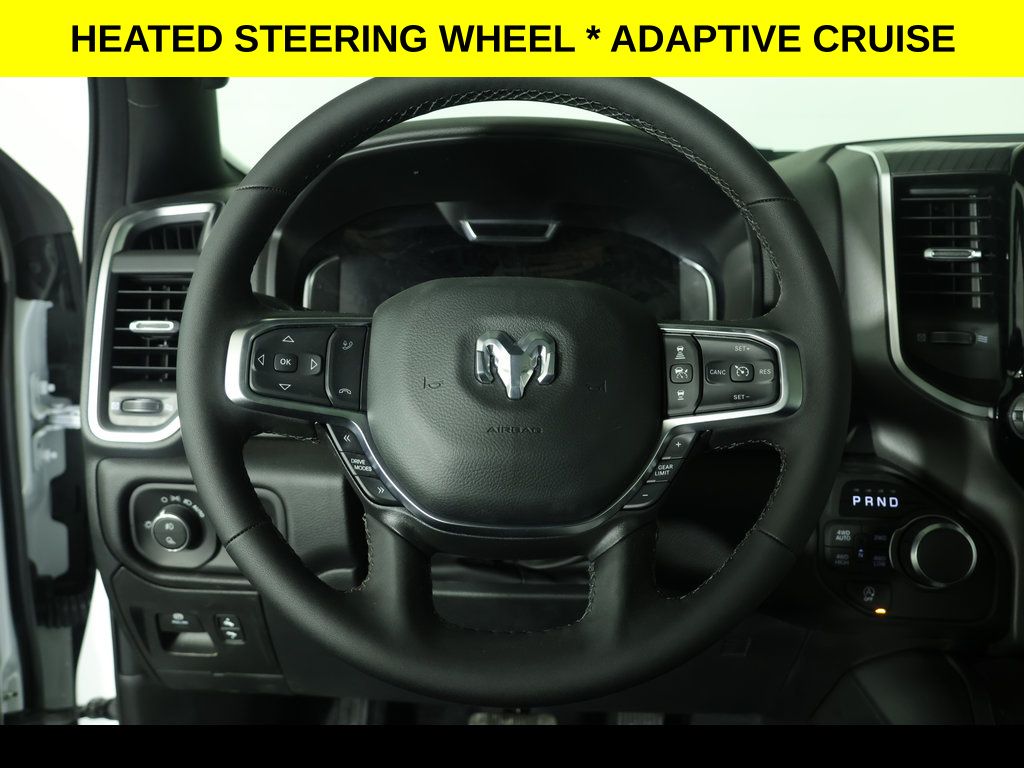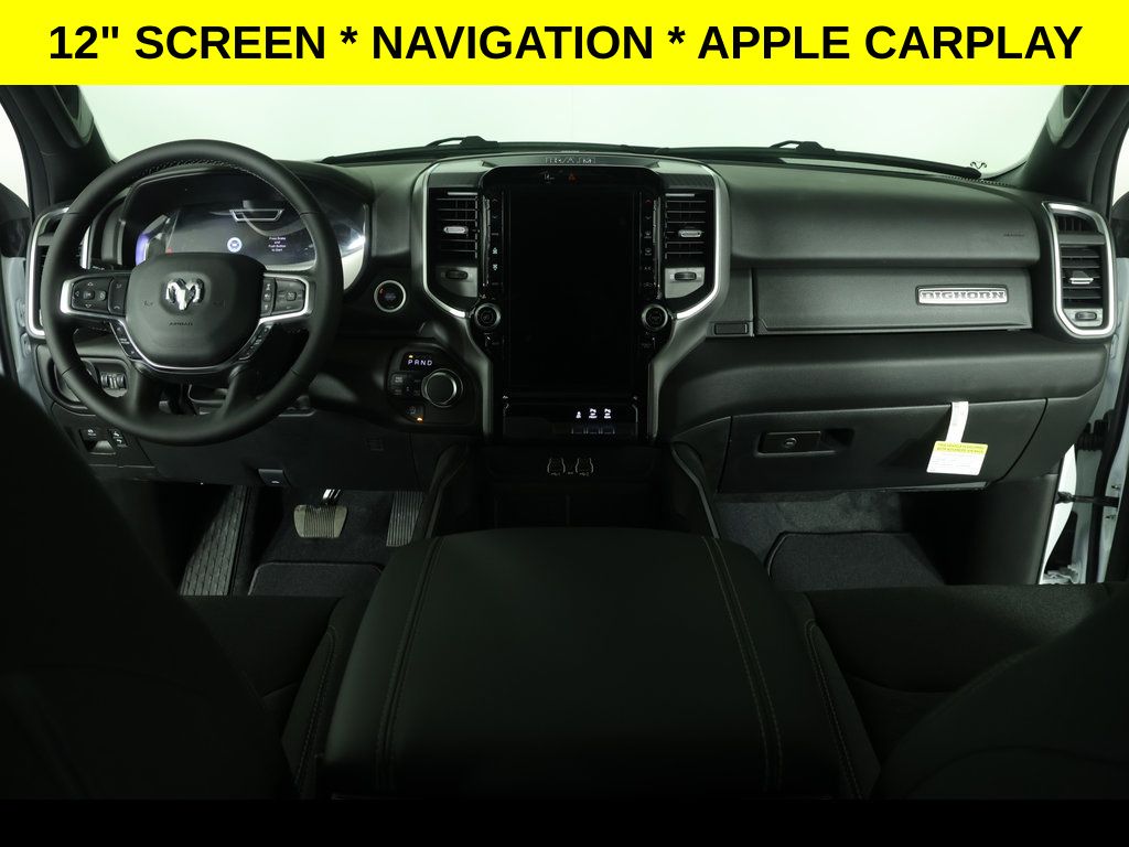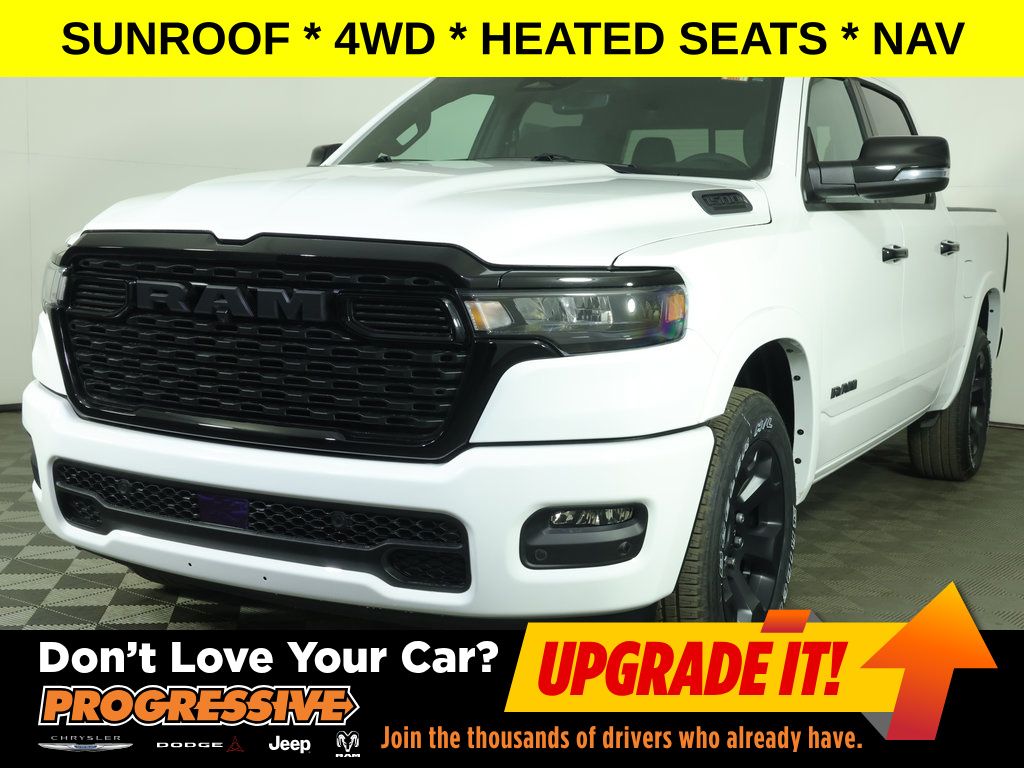 Bright White Clearcoat 2026 Ram 1500 Big Horn/Lone Star 4WD 8-Speed Automatic 3.0L I6 ** Adaptive Cruise Control, ** All-Wheel Drive, ** Automatic Emergency Braking, ** Backup Camera, ** Blind Spot Monitor, ** Cross Traffic Alert, ** Cruise Control, ** Four-Wheel Drive / 4X4, ** Heated Seats, ** Heated Steering Wheel, ** Keyless Entry, ** Keyless Start, ** Lane Departure Warning, ** Navigation System, ** Panoramic Roof / Sunroof, ** Premium Sound System / Premium Audio, ** Rear Cross Traffic Alert, ** Remote Start, ** Satellite Radio, ** Stability Control, ** Steering Wheel Controls, ** Sunroof/Moonroof, ** Tow Hitch / Trailer Hitch, ** USB Port, ** WiFi Hotspot, 115V Auxiliary Power Outlet, 115V Auxiliary Rear Power Outlet, 4-Wheel Disc Brakes, 400W Inverter, 4G LTE Wi-Fi Hot Spot, 9 Amplified Speakers with Subwoofer, ABS brakes, Air Conditioning, Air Conditioning ATC with Dual Zone Control, AM/FM radio, Anti-Spin Differential Rear Axle, Auto High-beam Headlights, Auto Power-Folding Mirrors, Auto-Dimming Exterior Driver Mirror, Auto-Dimming Rear-View Mirror, Big Horn Level 2 Equipment Group, Black Headlamp Bezels, Body Color Fender Flares, Body Color Front Bumper, Body Color Rear Bumper with Step Pads, Brake assist, Bucket Seats, Cloth Bucket Seats, Configurable Drive Mode, Connected Travel and Traffic Services, Connectivity - US/Canada, Convex Wide-Angle Exterior Mirror Insert, Delay-off headlights, Deluxe Cloth Bucket Seats, Dome Dual LED Reading Lamp, Dual Exhaust with Black Tips, Dual front impact airbags, Dual front side impact airbags, Dual-Pane Panoramic Sunroof, Electronic Stability Control, Exterior Mirrors Courtesy Lamps, Exterior Mirrors with Heating Element, Exterior Mirrors with Supplemental Signals, Front Center Armrest w/Storage, Front fog lights, Front reading lights, Front Seat Back Map Pockets, Front wheel independent suspension, Fully automatic headlights, Glove Box Lamp, Google Android Auto, GPS Antenna Input, GPS Navigation, Grille Black Surround Black Mesh, HD Radio, Heated door mirrors, Heated Front Seats, Heated Steering Wheel, Illuminated entry, Integrated Center Stack Radio, Integrated Voice Command with Bluetooth, Leather Wrapped Steering Wheel, LED Dome Lamp with on/Off Switch, LED Footwell Lighting, Low tire pressure warning, Media Hub with 2 Charge Only USBs, Night Edition, Occupant sensing airbag, Outside temperature display, Overhead console, Overhead LED Lamps, Panic alarm, ParkView Rear Back-Up Camera, Passenger vanity mirror, Power Adjust 8-Way Driver Seat, Power Adjustable Pedals, Power door mirrors, Power windows, Premium Overhead Console, Quick Order Package 21Z Big Horn, Radio: Uconnect 5 Navigation with 12.0" Display, Rear 60/40 Folding Seat, Rear Center Armrest, Rear Power Sliding Window, Rear step bumper, Rear Wheelhouse Liners, Rear Window Defroster, Remote keyless entry, Remote Tailgate Release, Security Alarm, SiriusXM Radio Service, SiriusXM with 360L, Speed control, Steering Wheel Mounted Audio Controls, Sun Visors with Illuminated Vanity Mirrors, Tachometer, Telescoping steering wheel, Tilt steering wheel, Traction control, Trip computer, Universal Garage Door Opener, USB Host Flip, Variably intermittent wipers, Voltmeter, Wheels: 20" x 9.0" Aluminum Painted Clad.