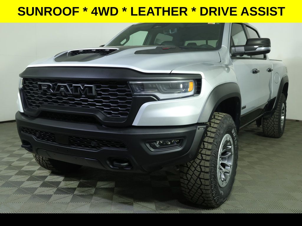 Silver Zynith 2026 Ram 1500 RHO 4WD 8-Speed Automatic 3.0L I6 ** Adaptive Cruise Control, ** All-Wheel Drive, ** Alloy Wheels / Premium Wheels, ** Apple CarPlay/Android Auto, ** Backup Camera, ** Blind Spot Monitor, ** Cooled Seats, ** Cross Traffic Alert, ** Cruise Control, ** Four-Wheel Drive / 4X4, ** Heated Seats, ** Heated Steering Wheel, ** Keyless Entry, ** Keyless Start, ** Lane Departure Warning, ** Leather Seats, ** Navigation System, ** Panoramic Roof / Sunroof, ** Premium Sound System / Premium Audio, ** Rear Cross Traffic Alert, ** Remote Start, ** Roof Rack, ** Satellite Radio, ** Stability Control, ** Steering Wheel Controls, ** Sunroof/Moonroof, ** Tow Hitch / Trailer Hitch, ** USB Port, ** WiFi Hotspot, 12-Way/1-Way Trailer Connector, 14.4" Touchscreen Display, 240 Amp Alternator, 4-Wheel Disc Brakes, 4G LTE Wi-Fi Hot Spot, ABS brakes, Adaptive suspension, Adjustable pedals, Air Conditioning, Alloy wheels, AM/FM radio, Apple CarPlay/Android Auto, Auto High-beam Headlights, Auto Power-Folding Mirrors, Auto-dimming door mirrors, Auto-Dimming Exterior Driver Mirror, Auto-dimming Rear-View mirror, Automatic temperature control, Brake assist, Compass, Connected Travel and Traffic Services, Connectivity - US/Canada, Delay-off headlights, Driver Power Seat Back Massage, Driver Seat Memory, Driver/Passenger Wrapped Assist Handles, Drowsy Driver Detection, Dual front impact airbags, Dual front side impact airbags, Dual Wireless Charging Pad, Electronic Stability Control, Evasive Steer Assist, Exterior Mirrors Courtesy Lamps, Exterior Mirrors with Heating Element, Exterior Mirrors with Memory, Exterior Mirrors with Supplemental Signals, Exterior Parking Camera Rear, Flareside Box, Front dual zone A/C, Front fog lights, Front Passenger Interactive Display, Front Passenger Power Seat Back Massage, Front wheel independent suspension, Full Length Premium Upgraded Floor Console, Fully automatic headlights, Garage door transmitter, GPS Navigation, Hands-Free Active Driving Assist System, Harman/Kardon 19 Speaker Premium Sound, HD Radio, Heads-Up Display, Heated door mirrors, Heated front seats, Heated Second Row Seats, Heated steering wheel, Illuminated entry, Integrated Center Stack Radio, Integrated Voice Command with Bluetooth, Intersection Collision Assist System, Leather steering wheel, Leather Trimmed Bucket Seats, Leather/Carbon Flat-Bottom Steering Wheel, LED CHMSL Lamp, Low tire pressure warning, Luxury Front Door Trim Panel, MOPAR RHO Exterior Graphics, MOPAR RHO Hood Graphics, Occupant sensing airbag, Outside temperature display, Overhead console, Panic alarm, Passenger vanity mirror, Power Adjustable Pedals with Memory, Power door mirrors, Power driver seat, Power passenger seat, Power Tailgate, Power windows, Premium Wrapped Instrument Panel Bezel, Quick Order Package 22Y RHO, Radio: Uconnect 5 Nav with 14.4" Display, Radio/Driver Seat/Mirrors/Pedals Memory, Rain Sensitive Windshield Wipers, Real Carbon Fiber Interior Accents, Rear 60/40 Folding Split Recline Seat, Rear seat center armrest, Rear step bumper, Rear window defroster, Remote keyless entry, RHO Level 1 Equipment Group, Security system, SiriusXM Radio Service, Smartphone as a Key Capable, Speed control, Steering wheel mounted audio controls, Surround View Camera System, Tachometer, Telescoping steering wheel, Tilt steering wheel, Traction control, Traffic Sign Recognition, Trip computer, Turn signal indicator mirrors, USB Host Flip, Variably intermittent wipers, Ventilated Front Seats, Ventilated Rear Seats, Voltmeter, Wheels: 18" x 9" Black Paint/Polish Aluminum.