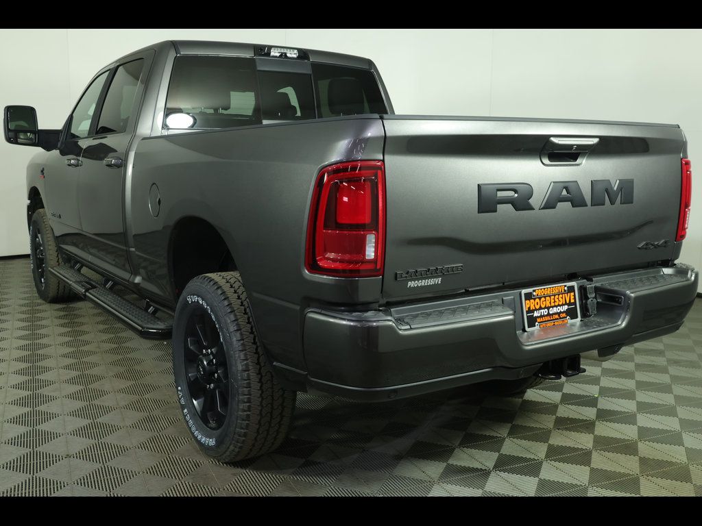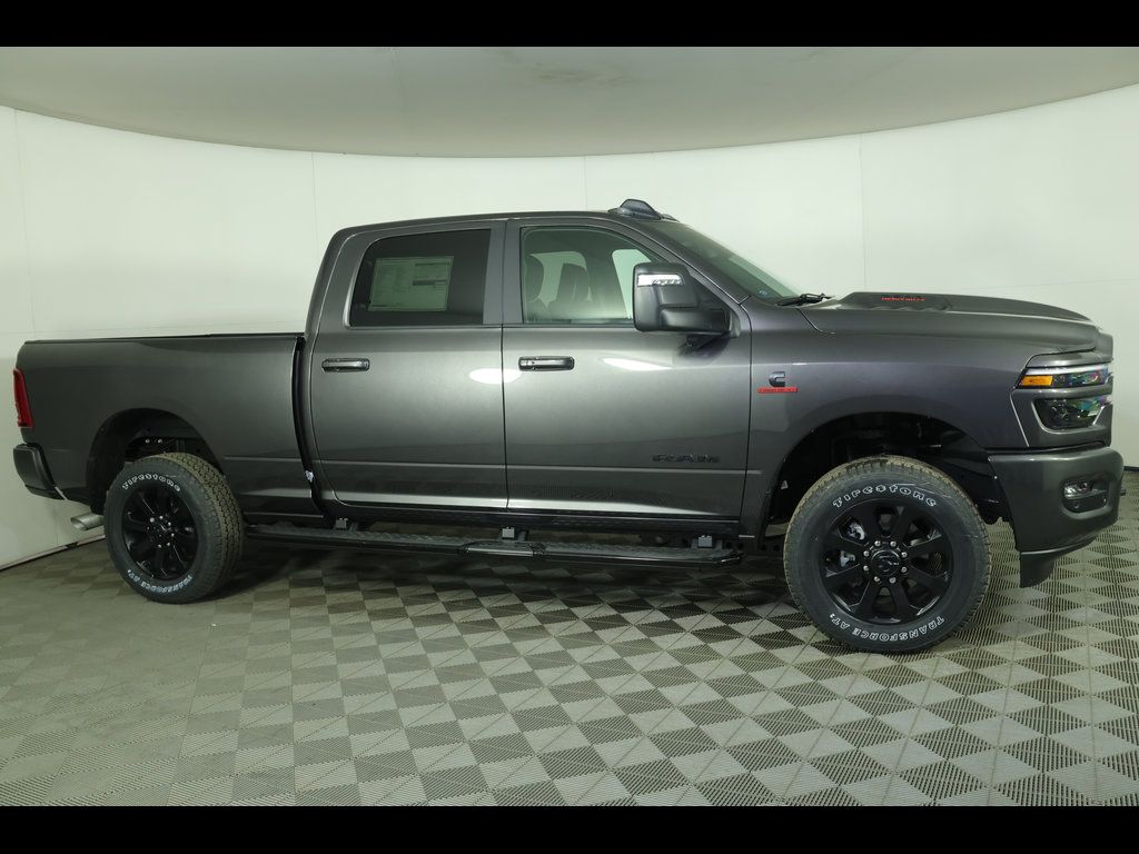 Granite Crystal Metallic Clearcoat 2026 Ram 2500 Laramie 4WD 8-Speed Automatic 6.7L I6 ** Adaptive Cruise Control, ** All-Wheel Drive, ** Alloy Wheels / Premium Wheels, ** Apple CarPlay/Android Auto, ** Automatic Emergency Braking, ** Backup Camera, ** Blind Spot Monitor, ** Cross Traffic Alert, ** Cruise Control, ** Four-Wheel Drive / 4X4, ** Heated Seats, ** Heated Steering Wheel, ** Keyless Entry, ** Keyless Start, ** Leather Seats, ** Navigation System, ** Panoramic Roof / Sunroof, ** Premium Sound System / Premium Audio, ** Rear Cross Traffic Alert, ** Remote Start, ** Satellite Radio, ** Stability Control, ** Steering Wheel Controls, ** Sunroof/Moonroof, ** Tow Hitch / Trailer Hitch, ** USB Port, ** WiFi Hotspot, 115V Auxiliary Rear Power Outlet, 17 Speaker Harman/Kardon Premium Sound, 4-Wheel Disc Brakes, 4G LTE Wi-Fi Hot Spot, 5th Wheel/Gooseneck Towing Prep Group, ABS brakes, Active Lane Management System, Adaptive Steering System, Air Conditioning, Alexa Built-in, AM/FM radio: SiriusXM with 360L, Anti-Spin Differential Rear Axle, Apple CarPlay/Android Auto, Auto Adjust in Reverse Exterior Mirrors, Auto High Beam Headlamp Control, Auto Power-Folding Mirrors, Auto-dimming Rear-View mirror, Automatic temperature control, Black Wheel Center Hub, Brake assist, Chrome Exterior Mirrors, Cold Weather Group, Compass, Connected Travel and Traffic Services, Connectivity - US/Canada, Driver vanity mirror, Drowsy Driver Detection, Dual front impact airbags, Dual front side impact airbags, Dual Wireless Charging Pad, Electronic Stability Control, Engine Block Heater, Exterior Mirrors Courtesy Lamps, Exterior Mirrors with Heating Element, Exterior Mirrors with Memory, Folding Flat Load Floor Storage, Front Center Armrest w/Storage, Front dual zone A/C, Front fog lights, Front reading lights, Front Seat Back Map Pockets, Full Length Upgraded Floor Console, Fully automatic headlights, Garage door transmitter, Global Telematics Box Module, Google Android Auto, GPS Antenna Input, GPS Navigation, HD Radio, Heated Front Seats, Heated Steering Wheel, High Back Seats, Illuminated entry, Integrated Voice Command with Bluetooth, Laramie Level 2 Plus Equipment Group, Leather Trimmed Bucket Seats, LED Bed Lighting, Low tire pressure warning, Mirror Running Lights, MOPAR Deployable Bed Step, MOPAR Spray in Bedliner, MOPAR Trailer Camera Wiring with No Camera, Navigation System, Night Edition, Occupant sensing airbag, Off-Road Info Pages, Outside temperature display, Panic alarm, ParkView Rear Back-Up Camera, Passenger vanity mirror, Power Adjust 8-Way Driver Seat, Power Adjust 8-Way Front Passenger Seat, Power Adjust Mirrors, Power Adjustable Pedals with Memory, Power Deployable Running Boards, Power driver seat, Power passenger seat, Power Sunroof, Power Telescoping Mirrors, Power windows, Quick Order Package 24H Laramie, Radio: Uconnect 5 Nav with 14.4" Display, Radio/Driver Seat/Mirrors/Pedals Memory, Rain Sensitive Windshield Wipers, Rear 60/40 Folding Seat, Rear window defroster, Remote keyless entry, Remote Tailgate Release, Security system, Selectable Tire Fill Alert, SiriusXM Radio Service, SiriusXM with 360L, Speed control, Split folding rear seat, Sport Performance Hood, Steering wheel mounted audio controls, Surround View Camera System, Tachometer, Tilt steering wheel, Towing Technology Group, Traction control, Traffic Sign Recognition, Trailer Reverse Guidance, Trailer Tire Pressure Monitoring System, Trailer Tow Pages, Trip computer, Turn signal indicator mirrors, Variably intermittent wipers, Wheels: 20" x 8.0" Black Painted Aluminum.