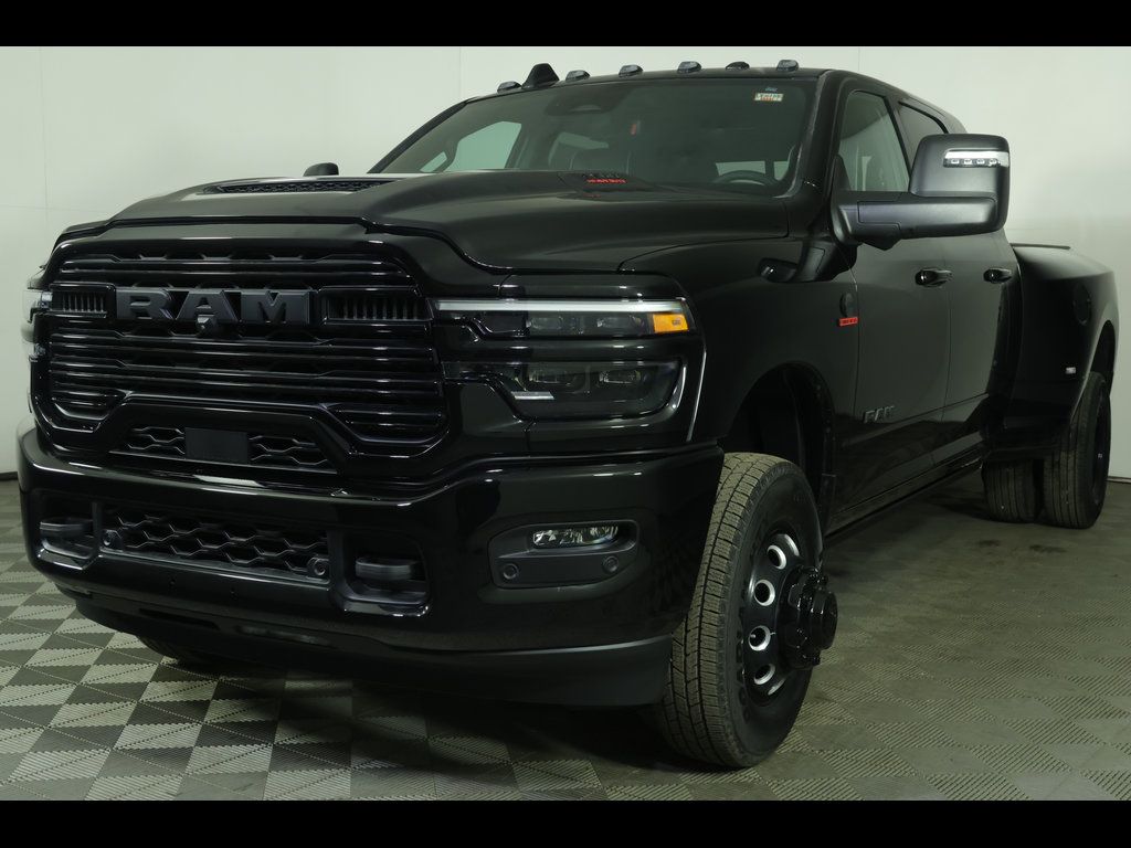 Diamond Black Crystal Pearlcoat 2026 Ram 3500 Laramie 4WD 8-Speed Automatic 6.7L I6 ** Adaptive Cruise Control, ** All-Wheel Drive, ** Alloy Wheels / Premium Wheels, ** Backup Camera, ** Blind Spot Monitor, ** Cooled Seats, ** Cross Traffic Alert, ** Cruise Control, ** Four-Wheel Drive / 4X4, ** Heated Seats, ** Heated Steering Wheel, ** Keyless Entry, ** Keyless Start, ** Lane Departure Warning, ** Leather Seats, ** Navigation System, ** Panoramic Roof / Sunroof, ** Premium Sound System / Premium Audio, ** Rear Cross Traffic Alert, ** Remote Start, ** Satellite Radio, ** Stability Control, ** Steering Wheel Controls, ** Sunroof/Moonroof, ** Tow Hitch / Trailer Hitch, ** USB Port, ** WiFi Hotspot, 115V Auxiliary Rear Power Outlet, 17 Speaker Harman/Kardon Premium Sound, 4-Wheel Disc Brakes, 4G LTE Wi-Fi Hot Spot, 5th Wheel/Gooseneck Towing Prep Group, 6,000 lbs Front Axle with Hub Extension, ABS brakes, Active Lane Management System, Adaptive Steering System, Air Conditioning, Alexa Built-in, AM/FM radio: SiriusXM with 360L, Auto Adjust in Reverse Exterior Mirrors, Auto Dim Exterior Mirror, Auto High Beam Headlamp Control, Auto Level Rear Air Suspension, Auto Power-Folding Mirrors, Auto-dimming Rear-View mirror, Automatic temperature control, Black Wheel Center Hub, Box and Rear Fender Clearance Lamps, Brake assist, Center Hub, Center Stop Lamp with Cargo View Camera, Clearance Lamps, Compass, Connected Travel and Traffic Services, Connectivity - US/Canada, Digital 3.0 Rear View Auto Dim Mirror, Disassociated Touchscreen Display, Drowsy Driver Detection, Dual front impact airbags, Dual front side impact airbags, Dual Rear Wheels, Dual Wireless Charging Pad, Electronic Stability Control, Exterior Mirrors with Heating Element, Exterior Mirrors with Supplemental Signals, Front Center Armrest w/Storage, Front dual zone A/C, Front fog lights, Front reading lights, Front Seat Back Map Pockets, Fully automatic headlights, Global Telematics Box Module, Google Android Auto, GPS Antenna Input, HD Radio, Heated front seats, Heated Steering Wheel, High Back Seats, Illuminated entry, Integrated Voice Command with Bluetooth, Laramie Level 2 Plus Equipment Group, Leather Trimmed Bucket Seats, LED Bed Lighting, Low tire pressure warning, Max Tow Package, MOPAR Deployable Bed Step, MOPAR Front and Rear Rubber Floor Mats, MOPAR Spray in Bedliner, MOPAR Trailer Camera Wiring with No Camera, Navigation System, Night Edition, Occupant sensing airbag, Off-Road Information Pages, Outside temperature display, Overhead console, Panic alarm, ParkView Rear Back-Up Camera, Power Adjust 8-Way Driver Seat, Power Adjust 8-Way Front Passenger Seat, Power Adjust Mirrors, Power Adjustable Pedals with Memory, Power Deployable Running Boards, Power door mirrors, Power driver seat, Power Sunroof, Power windows, Quick Order Package 24H Laramie, Radio: Uconnect 5 Nav with 14.4" Display, Radio/Driver Seat/Mirrors/Pedals Memory, Rain Sensitive Windshield Wipers, Rear 60/40 Folding Seat, Rear reading lights, Rear seat center armrest, Rear step bumper, Rear window defroster, Remote keyless entry, Remote Tailgate Release, Security system, Selectable Tire Fill Alert, SiriusXM with 360L, Speed control, Split folding rear seat, Sport Performance Hood, Steering wheel mounted audio controls, Surround View Camera System, Tachometer, Tilt steering wheel, Tow Technology Plus Group, Towing Technology Group, Traction control, Traffic Sign Recognition, Trailer Reverse Guidance, Trailer Reverse Steering Control, Trailer Tire Pressure Monitoring System, Trailer Tow Pages, Trip computer, Variably intermittent wipers, Ventilated Front Seats, Voltmeter, Wheels: 17" x 6.0" Polished Aluminum.