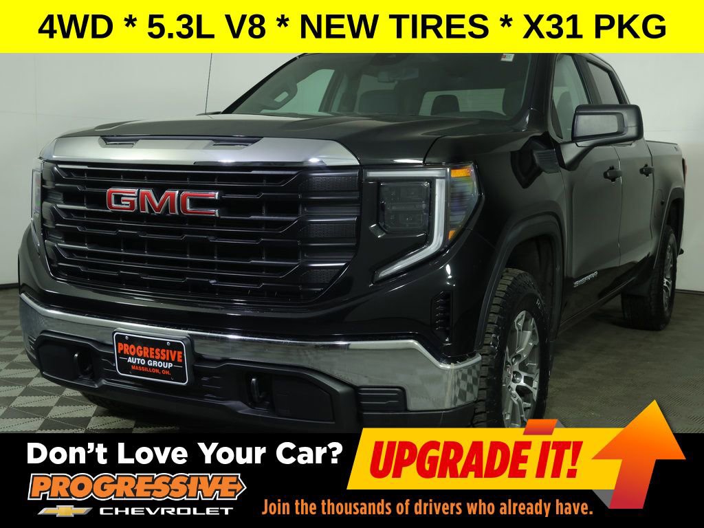 DON'T LOVE YOUR CAR ? UPGRADE IT ! ...With 4 Wheel Drive ** New Tires ** X31 Package ** Apple CarPlay/Android Auto, ** Premium Wheels, ** Backup Camera, ** Cruise Control, ** Keyless Entry, ** Lane Departure Warning, ** Premium Sound System / Premium Audio, ** Satellite Radio, ** Stability Control, ** Steering Wheel Controls, ** Tow Hitch / Trailer Hitch, ** USB Port, ** WiFi Hotspot, ** All-Wheel Drive, ** Four-Wheel Drive / 4X4, 10-Way Power Driver Seat Adjuster w/Lumbar, 120-Volt Bed Mounted Power Outlet, 2 Charge/Data USB Ports, 2 Type-C Charge-Only Rear USB Ports, 220 Amp Alternator, 4-Way Manual Driver Seat Adjuster, 4-Way Manual Passenger Seat Adjuster, 4-Wheel Disc Brakes, 6-Speaker Audio System Feature, ABS brakes, Air Conditioning, AM/FM radio, Apple CarPlay/Android Auto, Auto High-beam Headlights, Auto-Locking Rear Differential, Automatic Emergency Braking, Auxiliary External Transmission Oil Cooler, Brake assist, Buckle to Drive, Chrome Header w/Flat Black Grille Insert Bars, Convenience Package, Cruise Control, Deep-Tinted Glass, Delay-off headlights, Dual front impact airbags, Dual front side impact airbags, Electric Rear-Window Defogger, Electrical Steering Column Lock, Electronic Stability Control, Emergency communication system: OnStar and GMC Connected Services capable, Exterior Parking Camera Rear, EZ Lift Power Lock & Release Tailgate, Following Distance Indicator, Forward Collision Alert, Front 40/20/40 Split-Bench Seat, Front Frame-Mounted Black Recovery Hooks, Front Pedestrian Braking, Front reading lights, Front wheel independent suspension, Fully automatic headlights, HD Rear Vision Camera, Heated Power-Adjustable Outside Mirrors, Heavy-Duty Air Filter, Hill Descent Control, Hitch Guidance, Illuminated entry, IntelliBeam Automatic High Beam On/Off, Lane Keep Assist w/Lane Departure Warning, LED Cargo Area Lighting, Low tire pressure warning, Occupant sensing airbag, Off-Road Suspension, Outside temperature display, Overhead console, Panic alarm, Passenger vanity mirror, Power Door Locks, Power Front Windows w/Driver Express Up/Down, Power windows, Preferred Equipment Group 1SA, Pro Value Package, Push Button Start, Radio data system, Rear reading lights, Rear step bumper, Remote Keyless Entry, Solar Absorbing Tinted Glass, Speed-sensing steering, Split folding rear seat, Standard Suspension Package, Tachometer, Tilt steering wheel, Traction control, Trailering Package, Trip computer, Variably intermittent wipers, Vinyl Seat Trim, Voltmeter, Wheels: 18 x 8.5 6-Spoke Machined Aluminum, X31 Hard Badge, X31 Off-Road Package. The listed retail price is available to all customers. Additional terms and conditions may apply. All financing is subject to credit approval and lender qualification. Please contact the dealership for complete details. You'll be happy you chose Progressive Auto Group in MASSILLON for this 2022 GMC Sierra 1500.Clean CARFAX.Odometer is 20278 miles below market average!This vehicle has been thoroughly inspected and serviced by factory trained technicians. Many of our customers are looking for inventory with options such as Sunroof, Moonroof, Leather Seats, Trailer Hitch, Tow Package.