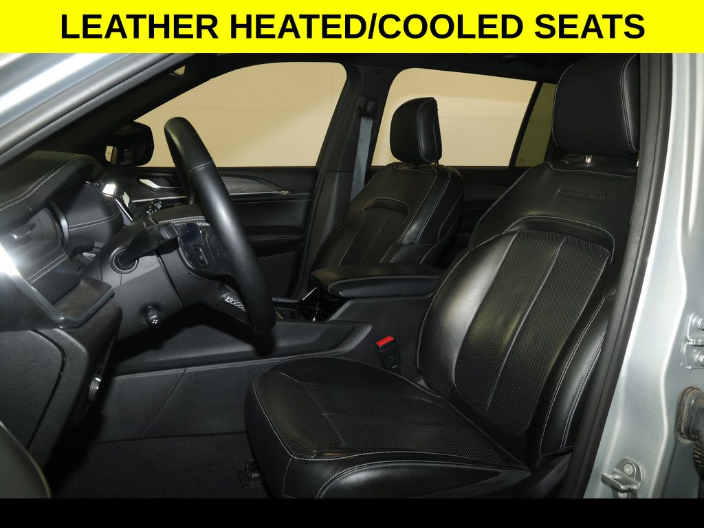 ** Adaptive Cruise Control, ** All-Wheel Drive, ** Alloy Wheels / Premium Wheels, ** Apple CarPlay/Android Auto, ** Backup Camera, ** Blind Spot Monitor, ** Cooled Seats, ** Cross Traffic Alert, ** Four-Wheel Drive / 4X4, ** Heated Seats, ** Heated Steering Wheel, ** Keyless Entry, ** Keyless Start, ** Lane Departure Warning, ** Leather Seats, ** Navigation System, ** Panoramic Roof / Sunroof, ** Premium Sound System / Premium Audio, ** Rear Cross Traffic Alert, ** Remote Start, ** Satellite Radio, ** Stability Control, ** Steering Wheel Controls, ** Sunroof/Moonroof, ** Third Row Seating / 3rd Row Seating, ** USB Port, ** WiFi Hotspot, 19 Speakers High Performance Audio, 2nd Row Seat Center Armrest/Cupholders, 3 Rear Seat Head Restraints, 3rd row seats: split-bench, 4-Wheel Disc Brakes, 4G LTE Wi-Fi Hot Spot, 950 Watt Amplifier, ABS brakes, Active Noise Control System, Adaptive suspension, Air Conditioning, All Radio Equipped Vehicles, AM/FM radio: SiriusXM with 360L, Anti-whiplash front head restraints, Audio memory, Auto High-beam Headlights, Auto-dimming door mirrors, Auto-dimming Rear-View mirror, Auto-leveling suspension, Automatic temperature control, Brake assist, Center Rear 3-Point Seat Belt, Compass, Connected Travel & Traffic Services, Connectivity - US/Canada, Delay-off headlights, Disassociated Touchscreen Display, Driver vanity mirror, Dual front impact airbags, Dual front side impact airbags, Electronic Stability Control, Emergency communication system, Four wheel independent suspension, Front Bucket Seats, Front dual zone A/C, Front fog lights, Front reading lights, Fully automatic headlights, Garage door transmitter, Global Telematics Box Module (TBM), Google Android Auto, GPS Antenna Input, GPS Navigation, HD Radio, Heated door mirrors, Heated front seats, Heated rear seats, Heated steering wheel, Illuminated entry, Integrated Center Stack Radio, Integrated Voice Command w/Bluetooth, Knee airbag, Leather steering wheel, Low tire pressure warning, Memory seat, Nappa Leather Seats, Occupant sensing airbag, Outside temperature display, Overhead console, Panic alarm, Passenger vanity mirror, Power door mirrors, Power driver seat, Power Fold Seatbacks, Power Liftgate, Power moonroof, Power passenger seat, Power windows, Quick Order Package 22N, Radio: Uconnect 5 Nav w/10.1" Display, Rain sensing wipers, Rear air conditioning, Rear reading lights, Rear window defroster, Rear window wiper, Reclining 3rd row seat, Remote keyless entry, Security system, SiriusXM Radio Service, SiriusXM Satellite Radio, Speed control, Speed-Sensitive Wipers, Split folding rear seat, Steering wheel memory, Steering wheel mounted audio controls, Tachometer, Telescoping steering wheel, Tilt steering wheel, Traction control, Trip computer, Turn signal indicator mirrors, USB Host Flip, Variably intermittent wipers, Ventilated front seats, Voltmeter, Wheels: 20" x 8.5" Machined Face Aluminum.