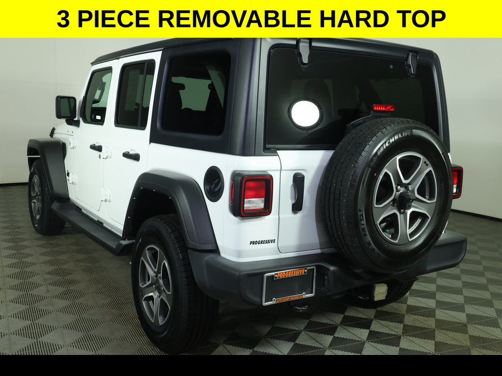** All-Wheel Drive, ** Alloy Wheels / Premium Wheels, ** Backup Camera, ** Cruise Control, ** Four-Wheel Drive / 4X4, ** Keyless Entry, ** Keyless Start, ** Premium Sound System / Premium Audio, ** Remote Start, ** Satellite Radio, ** Stability Control, ** Steering Wheel Controls, ** Tow Hitch / Trailer Hitch, ** USB Port, ** WiFi Hotspot, 240 Amp Alternator, 4-Wheel Disc Brakes, 7 & 4 Pin Wiring Harness, 700 Amp Maintenance Free Battery, 8 Speakers, ABS brakes, Air Conditioning, AM/FM radio, Anti-Spin Differential Rear Axle, Automatic Headlamps, Aux Battery, Auxiliary Switches, Black 3-Piece Hard Top, Black 3-Piece Hard Top, Brake assist, Class II Receiver Hitch, Cloth Low-Back Bucket Seats, Compass, Convenience Group, Corning Gorilla Glass, Deep Tint Sunscreen Windows, Delay-off headlights, Driver vanity mirror, Dual front impact airbags, Dual front side impact airbags, Electronic Stability Control, Emergency communication system: SiriusXM Guardian, Engine Oil Cooler, Freedom Panel Storage Bag, Front 1-Touch Down Power Windows, Front Bucket Seats, Front Center Armrest w/Storage, Front fog lights, Front reading lights, Integrated roll-over protection, Leather Wrapped Steering Wheel, Low tire pressure warning, Non-Lock Fuel Cap w/o Discriminator, Occupant sensing airbag, Outside temperature display, ParkView Rear Back-Up Camera, Passenger vanity mirror, Power Heated Mirrors, Quick Order Package 25S Sport S, Radio data system, Radio: Uconnect 4 w/7" Display, Rear reading lights, Rear Window Defroster, Rear Window Wiper/Washer, Remote Keyless Entry, Security Alarm, Side Steps, SiriusXM Radio Service, Speed control, Speed Sensitive Power Locks, Split folding rear seat, Sport S, Steering wheel mounted audio controls, Sun Visors w/Illuminated Vanity Mirrors, Tachometer, Telescoping steering wheel, Tilt steering wheel, Traction control, Trailer Tow & HD Electrical Group, Trip computer, Universal Garage Door Opener, Variably intermittent wipers, Wheels: 17" x 7.5" Tech Silver Aluminum.