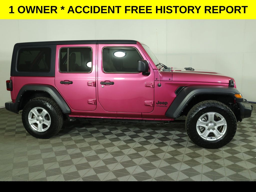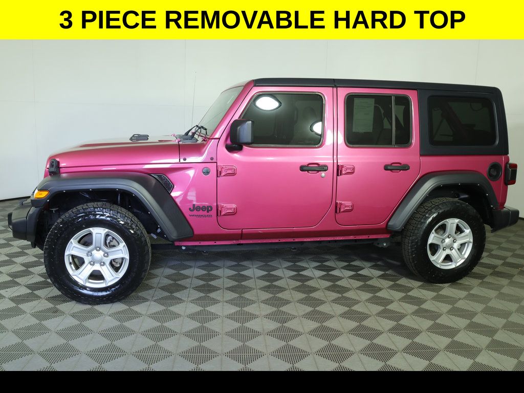 DON'T LOVE YOUR CAR ? UPGRADE IT !...With 4 Wheel Drive ** Removable Hard Top ** Safety Package ** Alloy Wheels / Premium Wheels, ** Apple CarPlay/Android Auto, ** Backup Camera, ** Blind Spot Monitor, ** Cross Traffic Alert, ** Four-Wheel Drive / 4X4, ** Keyless Entry, ** Premium Sound System / Premium Audio, ** Rear Cross Traffic Alert, ** Satellite Radio, ** Stability Control, ** Steering Wheel Controls, ** USB Port, ** WiFi Hotspot, 4-Wheel Disc Brakes, 8 Speakers, ABS brakes, Air Conditioning, AM/FM radio, Apple CarPlay/Android Auto, Automatic Headlamps, Aux Battery, Black 3-Piece Hard Top, Black 3-Piece Hard Top, Blind Spot & Cross Path Detection, Brake assist, Cloth Low-Back Bucket Seats, Compass, Corning Gorilla Glass, Deep Tint Sunscreen Windows, Delay-off headlights, Driver vanity mirror, Dual front impact airbags, Dual front side impact airbags, Electronic Stability Control, Emergency communication system: SiriusXM Guardian, Freedom Panel Storage Bag, Front 1-Touch Down Power Windows, Front Bucket Seats, Front fog lights, Front reading lights, Integrated roll-over protection, Leather Wrapped Steering Wheel, LED Taillamps, Low tire pressure warning, Non-Lock Fuel Cap w/o Discriminator, Occupant sensing airbag, Outside temperature display, ParkSense Rear Park Assist System, ParkView Rear Back-Up Camera, Passenger vanity mirror, Power Heated Mirrors, Quick Order Package 22S Sport S, Radio data system, Radio: Uconnect 4 w/7" Display, Rear reading lights, Rear Window Defroster, Rear Window Wiper/Washer, Remote Keyless Entry, Safety Group, Security Alarm, Speed control, Speed Sensitive Power Locks, Split folding rear seat, Sport S, Steering wheel mounted audio controls, Sun Visors w/Illuminated Vanity Mirrors, Tachometer, Telescoping steering wheel, Tilt steering wheel, Traction control, Trip computer, Variably intermittent wipers, Wheels: 17" x 7.5" Tech Silver Aluminum.