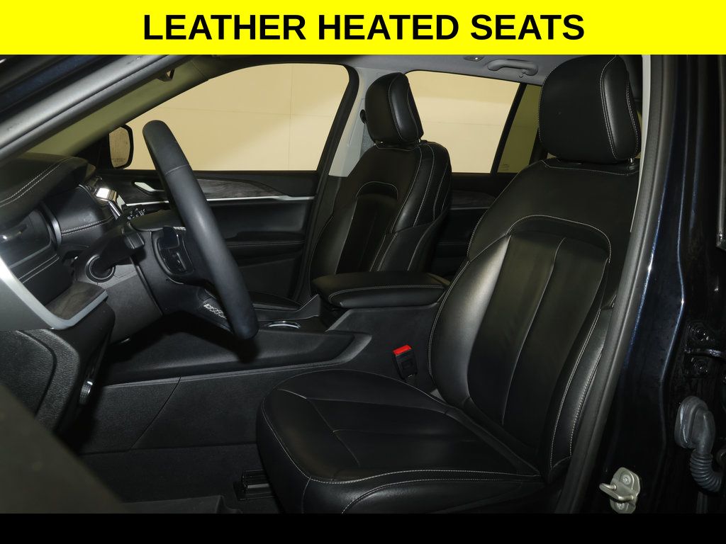 ** Adaptive Cruise Control, ** All-Wheel Drive, ** Alloy Wheels / Premium Wheels, ** Apple CarPlay/Android Auto, ** Backup Camera, ** Blind Spot Monitor, ** Cross Traffic Alert, ** Cruise Control, ** Four-Wheel Drive / 4X4, ** Heated Seats, ** Heated Steering Wheel, ** Keyless Entry, ** Keyless Start, ** Lane Departure Warning, ** Leather Seats, ** Navigation System, ** Premium Sound System / Premium Audio, ** Rear Cross Traffic Alert, ** Remote Start, ** Satellite Radio, ** Stability Control, ** Steering Wheel Controls, ** USB Port, ** WiFi Hotspot, 4-Wheel Disc Brakes, 6 Speakers, ABS brakes, Active Noise Control System, Air Conditioning, AM/FM radio: SiriusXM with 360L, Anti-whiplash front head restraints, Auto High-beam Headlights, Automatic temperature control, Brake assist, Capri Leatherette Seats, Compass, Delay-off headlights, Driver vanity mirror, Dual front impact airbags, Dual front side impact airbags, Electronic Stability Control, Emergency communication system, Four wheel independent suspension, Front Bucket Seats, Front Center Armrest w/Storage, Front dual zone A/C, Front fog lights, Front reading lights, Fully automatic headlights, Garage door transmitter, Heated door mirrors, Heated front seats, Heated rear seats, Heated steering wheel, Illuminated entry, Knee airbag, Low tire pressure warning, Memory seat, Navigation System, Occupant sensing airbag, Outside temperature display, Overhead console, Panic alarm, ParkView Rear Back-Up Camera, Passenger vanity mirror, Power door mirrors, Power driver seat, Power Liftgate, Power passenger seat, Power windows, Quick Order Package 23E, Radio: Uconnect 5 Nav w/10.1" Display, Rear reading lights, Rear window defroster, Rear window wiper, Remote keyless entry, Security system, Speed control, Speed-Sensitive Wipers, Split folding rear seat, Steering wheel mounted audio controls, Tachometer, Telescoping steering wheel, Tilt steering wheel, Traction control, Trip computer, Turn signal indicator mirrors, Variably intermittent wipers, Voltmeter, Wheels: 18" x 8" Polished/Painted Aluminum.