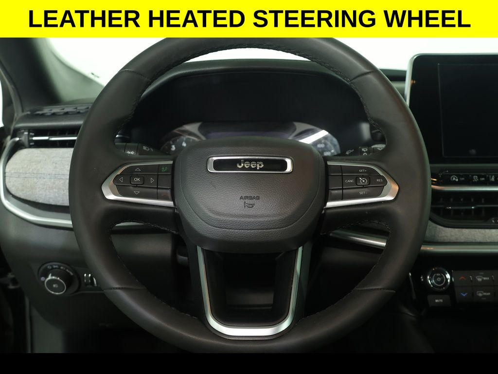 ** All-Wheel Drive, ** Alloy Wheels / Premium Wheels, ** Apple CarPlay/Android Auto, ** Backup Camera, ** Blind Spot Monitor, ** Cross Traffic Alert, ** Cruise Control, ** Four-Wheel Drive / 4X4, ** Heated Seats, ** Heated Steering Wheel, ** Keyless Entry, ** Lane Departure Warning, ** Premium Sound System / Premium Audio, ** Rear Cross Traffic Alert, ** Satellite Radio, ** Stability Control, ** Steering Wheel Controls, ** USB Port, ** WiFi Hotspot, 4-Wheel Disc Brakes, 6 Speakers, ABS brakes, Air Conditioning, AM/FM radio: SiriusXM, Apple CarPlay/Android Auto, Auto High-beam Headlights, Brake assist, Compass, Delay-off headlights, Driver vanity mirror, Dual front impact airbags, Dual front side impact airbags, Electronic Stability Control, Emergency communication system: Jeep Connect, Four wheel independent suspension, Front Bucket Seats, Front Center Armrest w/Storage, Front fog lights, Front reading lights, Fully automatic headlights, Heated door mirrors, Heated front seats, Heated steering wheel, Illuminated entry, Knee airbag, Leather Shift Knob, Leather steering wheel, Low tire pressure warning, Occupant sensing airbag, Outside temperature display, Overhead console, Panic alarm, ParkView Rear Back-Up Camera, Passenger vanity mirror, Power door mirrors, Power windows, Premium audio system: UConnect 5, Quick Order Package 29J, Rear seat center armrest, Rear window defroster, Rear window wiper, Remote keyless entry, Security system, Speed control, Split folding rear seat, Steering wheel mounted audio controls, Tachometer, Telescoping steering wheel, Tilt steering wheel, Traction control, Trip computer, Variably intermittent wipers, Wheels: 17" x 7" Aluminum (DISC).