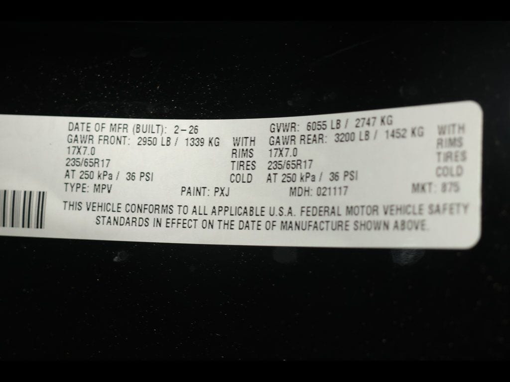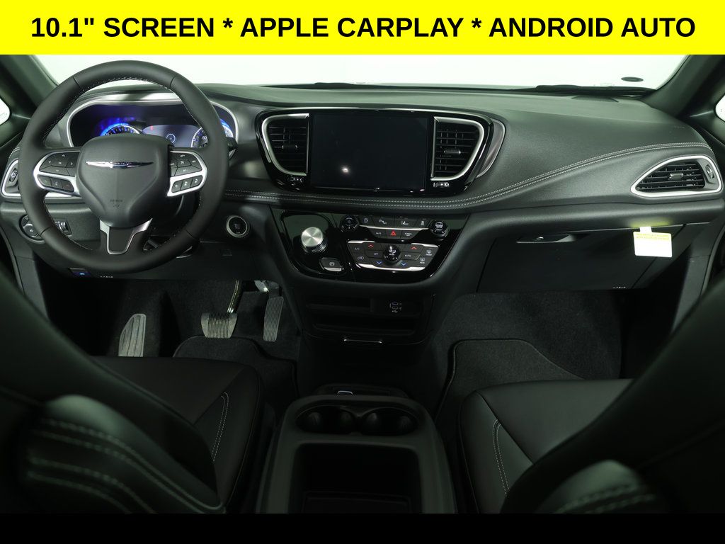 Diamond Black Crystal Pearlcoat 2026 Chrysler Pacifica Select FWD 9-Speed 948TE Automatic 3.6L V6 24V VVT ** Adaptive Cruise Control, ** Alloy Wheels / Premium Wheels, ** Apple CarPlay/Android Auto, ** Backup Camera, ** Blind Spot Monitor, ** Cross Traffic Alert, ** Cruise Control, ** Heated Seats, ** Heated Steering Wheel, ** Keyless Entry, ** Keyless Start, ** Lane Departure Warning, ** Leather Seats, ** Premium Sound System / Premium Audio, ** Rear Cross Traffic Alert, ** Remote Start, ** Satellite Radio, ** Stability Control, ** Steering Wheel Controls, ** Third Row Seating / 3rd Row Seating, ** USB Port, ** WiFi Hotspot, 17" x 7.0" Aluminum Wheels, 360 Surround View Camera System, 3rd row seats: split-bench, 4-Wheel Disc Brakes, 4G LTE Wi-Fi Hot Spot, 6 Speakers, ABS brakes, Air Conditioning, AM/FM radio: SiriusXM, Apple CarPlay/Android Auto, Auto-dimming Rear-View mirror, Automatic temperature control, Brake assist, Caprice Leatherette Bucket Seats, Compass, Connectivity - US/Canada, Delay-off headlights, Disassociated Touchscreen Display, Driver vanity mirror, Driver's Seat Mounted Armrest, Dual front impact airbags, Dual front side impact airbags, Electronic Stability Control, Emergency communication system: Chrysler Connect, Four wheel independent suspension, Front Bucket Seats, Front dual zone A/C, Front fog lights, Front reading lights, Fully automatic headlights, Garage door transmitter, Google Android Auto, GPS Antenna Input, Heated door mirrors, Heated front seats, Heated steering wheel, Illuminated entry, Integrated Active Noise Cancellation, Knee airbag, Low tire pressure warning, Memory seat, Occupant sensing airbag, Outside temperature display, Overhead console, Panic alarm, ParkSense Front/Rear Park Assist with Stop, ParkView Rear Back-Up Camera, Passenger seat mounted armrest, Passenger vanity mirror, Power door mirrors, Power driver seat, Power Liftgate, Power windows, Quick Order Package 27L, Radio data system, Radio: Uconnect 5 with 10.1" Display, Rain sensing wipers, Rear air conditioning, Rear reading lights, Rear window defroster, Rear window wiper, Reclining 3rd row seat, Remote keyless entry, Safety Sphere, Security system, Speed control, Split folding rear seat, Steering wheel mounted audio controls, Tachometer, Telescoping steering wheel, Tilt steering wheel, Touring Suspension, Traction control, Trip computer, Turn signal indicator mirrors, USB Host Flip, Variably intermittent wipers, Voltmeter.