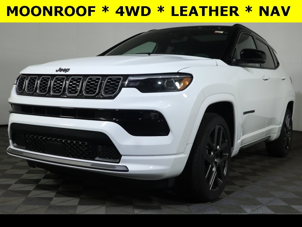 AVAILABLE PROGRESSIVE SERVICE RENTAL ** Bright White Clearcoat 2025 Jeep Compass Limited 4WD 8-Speed Automatic 2.0L I4 DOHC ** Adaptive Cruise Control, ** All-Wheel Drive, ** Automatic Emergency Braking, ** Backup Camera, ** Blind Spot Monitor, ** Cross Traffic Alert, ** Cruise Control, ** Four-Wheel Drive / 4X4, ** Heated Seats, ** Heated Steering Wheel, ** Keyless Entry, ** Keyless Start, ** Lane Departure Warning, ** Leather Seats, ** Navigation System, ** Panoramic Roof / Sunroof, ** Premium Sound System / Premium Audio, ** Rear Cross Traffic Alert, ** Remote Start, ** Satellite Radio, ** Stability Control, ** Steering Wheel Controls, ** Sunroof/Moonroof, ** USB Port, ** WiFi Hotspot, 10.1" Touchscreen Display, 4-Wheel Disc Brakes, ABS brakes, Air Conditioning, Alexa Built-In, Auto High-beam Headlights, Auto-dimming Rear-View mirror, Automatic temperature control, Brake assist, Compass, Connected Travel & Traffic Services, Delay-off headlights, Driver vanity mirror, Dual front impact airbags, Dual front side impact airbags, Electronic Stability Control, Emergency communication system: Jeep Connect, Four wheel independent suspension, Front Bucket Seats, Front Center Armrest w/Storage, Front dual zone A/C, Front reading lights, Fully automatic headlights, Gloss Black Surround/Neutral Gray Rings, GPS Navigation, HD Radio, Heated door mirrors, Heated front seats, High Altitude Package, Illuminated entry, Integrated Voice Command w/Bluetooth, Knee airbag, Leather Shift Knob, Leather steering wheel, Leatherette Seats, LED Low/Highbeam Projector Headlamps, Liquid Chrome/Chainmail Hydro Accent, Low tire pressure warning, Occupant sensing airbag, Outside temperature display, Overhead console, Panic alarm, ParkView Rear Back-Up Camera, Passenger vanity mirror, Power door mirrors, Power driver seat, Power Front/Fixed Rear Full Sunroof, Power windows, Premium Alpine Speaker System, Premium LED Fog Lamps, Premium Taillamps, Quick Order Package 29G, Radio: Uconnect 5 w/10.1" Display, Rain sensing wipers, Rear seat center armrest, Rear window defroster, Rear window wiper, Remote keyless entry, Security system, SiriusXM w/360L, Speed control, Split folding rear seat, Steering wheel mounted audio controls, Tachometer, Telescoping steering wheel, Tilt steering wheel, Traction control, Trip computer, Turn signal indicator mirrors, Variably intermittent wipers, Wheels: 19" x 7.5" Aluminum Painted.
