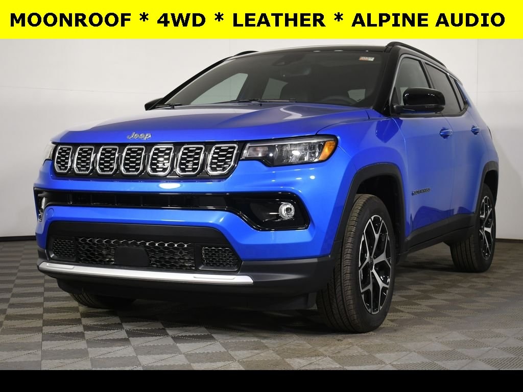 * Just Sold * AVAILABLE PROGRESSIVE SERVICE RENTAL * Hydro Blue Pearlcoat 2025 Jeep Compass Limited 4WD 8-Speed Automatic 2.0L I4 DOHC ** Adaptive Cruise Control, ** Alloy Wheels / Premium Wheels, ** Apple CarPlay/Android Auto, ** Automatic Emergency Braking, ** Backup Camera, ** Blind Spot Monitor, ** Cross Traffic Alert, ** Cruise Control, ** Heated Seats, ** Heated Steering Wheel, ** Keyless Entry, ** Keyless Start, ** Lane Departure Warning, ** Leather Seats, ** Panoramic Roof / Sunroof, ** Premium Sound System / Premium Audio, ** Rain Sensing Wipers, ** Rear Cross Traffic Alert, ** Remote Start, ** Satellite Radio, ** Stability Control, ** Steering Wheel Controls, ** Sunroof/Moonroof, ** USB Port, ** WiFi Hotspot, ** All-Wheel Drive, ** Four-Wheel Drive / 4X4, 10.1" Touchscreen Display, 4-Wheel Disc Brakes, ABS brakes, Air Conditioning, Alloy wheels, AM/FM radio: SiriusXM, Auto High-beam Headlights, Auto-dimming Rear-View mirror, Automatic temperature control, Brake assist, Compass, Delay-off headlights, Driver vanity mirror, Dual front impact airbags, Dual front side impact airbags, Electronic Stability Control, Emergency communication system: Jeep Connect, Four wheel independent suspension, Front Center Armrest w/Storage, Front dual zone A/C, Front fog lights, Front reading lights, Fully automatic headlights, Heated door mirrors, Heated front seats, Illuminated entry, Knee airbag, Leather Shift Knob, Leather steering wheel, Leatherette Seats, Low tire pressure warning, Occupant sensing airbag, Outside temperature display, Overhead console, Panic alarm, ParkView Rear Back-Up Camera, Passenger vanity mirror, Power door mirrors, Power driver seat, Power Front/Fixed Rear Full Sunroof, Power windows, Premium Alpine Speaker System, Quick Order Package 29G, Radio: Uconnect 5 w/10.1" Display, Rain sensing wipers, Rear seat center armrest, Rear window defroster, Rear window wiper, Remote keyless entry, Security system, Speed control, Split folding rear seat, Steering wheel mounted audio controls, Sun and Sound Group, Tachometer, Telescoping steering wheel, Tilt steering wheel, Traction control, Trip computer, Turn signal indicator mirrors, Variably intermittent wipers.