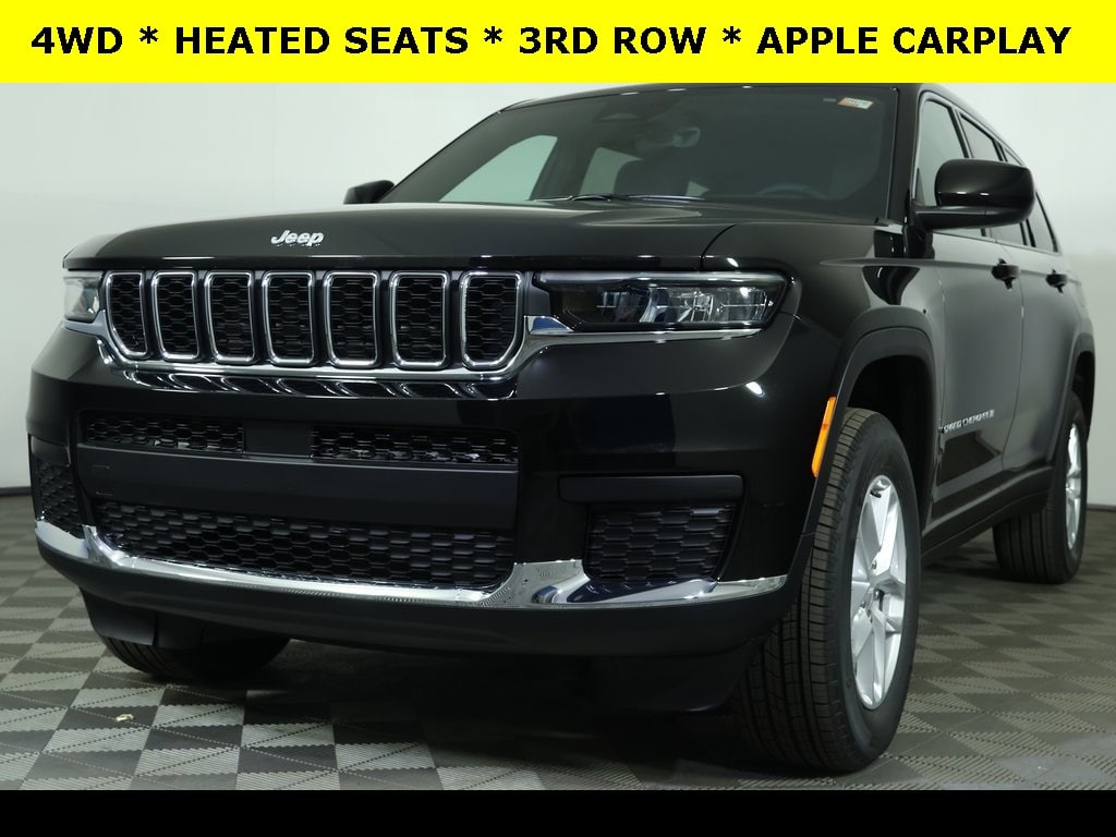 PROGRESSIVE SERVICE RENTAL ** Diamond Black Crystal Pearlcoat 2025 Jeep Grand Cherokee L Laredo 4WD 8-Speed Automatic 3.6L V6 24V VVT ** Adaptive Cruise Control, ** Alloy Wheels / Premium Wheels, ** Apple CarPlay/Android Auto, ** Backup Camera, ** Blind Spot Monitor, ** Cross Traffic Alert, ** Cruise Control, ** Heated Seats, ** Heated Steering Wheel, ** Keyless Entry, ** Keyless Start, ** Lane Departure Warning, ** Premium Sound System / Premium Audio, ** Rear Cross Traffic Alert, ** Remote Start, ** Satellite Radio, ** Stability Control, ** Steering Wheel Controls, ** Third Row Seating / 3rd Row Seating, ** Tow Hitch / Trailer Hitch, ** USB Port, ** WiFi Hotspot, ** All-Wheel Drive, ** Four-Wheel Drive / 4X4, 115V Auxiliary Power Outlet, 3rd Row Charge-Only USB Ports, 3rd row seats: split-bench, 4-Wheel Disc Brakes, 6 Speakers, ABS brakes, Air Conditioning, AM/FM radio: SiriusXM, Anti-whiplash front head restraints, Automatic temperature control, Brake assist, Cloth Seats, Compass, Delay-off headlights, Driver vanity mirror, Dual front impact airbags, Dual front side impact airbags, Electronic Stability Control, Emergency communication system, Four wheel independent suspension, Front Bucket Seats, Front Center Armrest w/Storage, Front dual zone A/C, Front reading lights, Fully automatic headlights, Heated door mirrors, Heated Front Seats, Heated Steering Wheel, Illuminated entry, Knee airbag, Low tire pressure warning, Luxury Tech Group I, Manual Fold Seatbacks, Occupant sensing airbag, Outside temperature display, Overhead console, Panic alarm, ParkView Rear Back-Up Camera, Passenger vanity mirror, Power door mirrors, Power driver seat, Power Liftgate, Power windows, Quick Order Package 23A Laredo, Radio data system, Radio: Uconnect 5 w/8.4" Display, Rain Sensitive Windshield Wipers, Rear air conditioning, Rear reading lights, Rear window defroster, Rear window wiper, Reclining 3rd row seat, Remote keyless entry, Remote Start, Security system, Selectable Tire Fill Alert, Speed control, Speed-Sensitive Wipers, Split folding rear seat, Steering wheel mounted audio controls, Tachometer, Telescoping steering wheel, Tilt steering wheel, Traction control, Trip computer, Variably intermittent wipers, Voltmeter, Wheels: 18" x 8.0" Fully Painted Aluminum, Wireless Charging Pad.