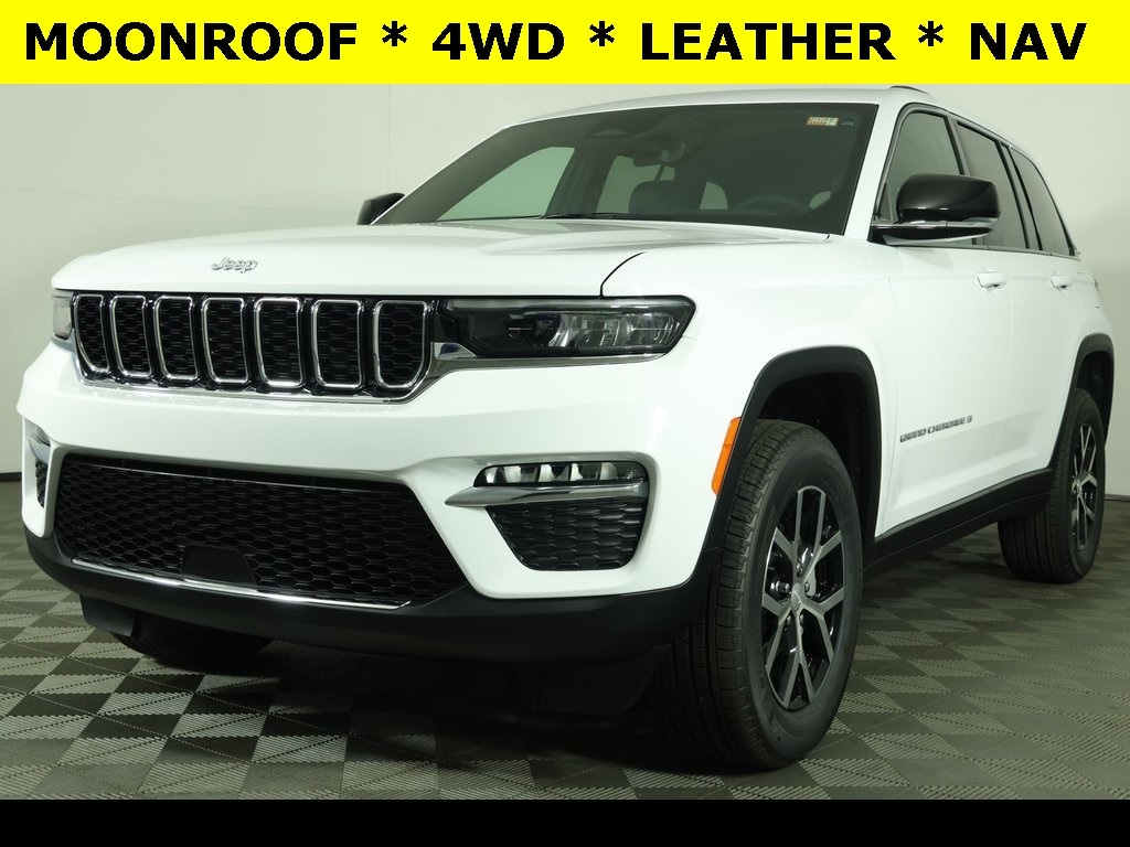 Bright White Clearcoat 2025 Jeep Grand Cherokee Limited 4WD 8-Speed Automatic 3.6L V6 24V VVT ** Adaptive Cruise Control, ** Alloy Wheels / Premium Wheels, ** Apple CarPlay/Android Auto, ** Backup Camera, ** Blind Spot Monitor, ** Cross Traffic Alert, ** Cruise Control, ** Heated Seats, ** Heated Steering Wheel, ** Keyless Entry, ** Keyless Start, ** Lane Departure Warning, ** Leather Seats, ** Navigation System, ** Panoramic Roof / Sunroof, ** Premium Sound System / Premium Audio, ** Rear Cross Traffic Alert, ** Satellite Radio, ** Stability Control, ** Steering Wheel Controls, ** Sunroof/Moonroof, ** USB Port, ** WiFi Hotspot, ** All-Wheel Drive, ** Four-Wheel Drive / 4X4, 4-Wheel Disc Brakes, 6 Speakers, ABS brakes, Active Noise Control System, Air Conditioning, AM/FM radio: SiriusXM with 360L, Anti-whiplash front head restraints, Audio memory, Auto High-beam Headlights, Automatic temperature control, Brake assist, Capri Leatherette Seats, Compass, Delay-off headlights, Driver vanity mirror, Dual front impact airbags, Dual front side impact airbags, Dual-Pane Panoramic Sunroof, Electronic Stability Control, Emergency communication system, Four wheel independent suspension, Front Bucket Seats, Front Center Armrest w/Storage, Front dual zone A/C, Front fog lights, Front reading lights, Fully automatic headlights, Garage door transmitter, Heated door mirrors, Heated rear seats, Heated steering wheel, Illuminated entry, Knee airbag, Low tire pressure warning, Memory seat, Navigation System, Occupant sensing airbag, Outside temperature display, Overhead console, Panic alarm, ParkView Rear Back-Up Camera, Passenger vanity mirror, Power door mirrors, Power driver seat, Power Liftgate, Power passenger seat, Power windows, Quick Order Package 22E, Radio data system, Radio: Uconnect 5 Nav w/10.1" Display, Rear reading lights, Rear window defroster, Rear window wiper, Remote keyless entry, Security system, Speed control, Speed-Sensitive Wipers, Split folding rear seat, Steering wheel mounted audio controls, Tachometer, Telescoping steering wheel, Tilt steering wheel, Traction control, Trip computer, Turn signal indicator mirrors, Variably intermittent wipers, Voltmeter, Wheels: 18" x 8" Polished/Painted Aluminum.