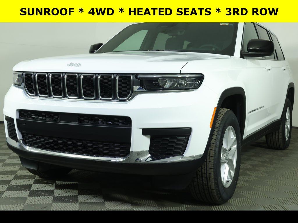 PROGRESSIVE SERVICE RENTAL ** Bright White Clearcoat 2025 Jeep Grand Cherokee L Laredo 4WD 8-Speed Automatic 3.6L V6 24V VVT ** Adaptive Cruise Control, ** All-Wheel Drive, ** Alloy Wheels / Premium Wheels, ** Apple CarPlay/Android Auto, ** Backup Camera, ** Blind Spot Monitor, ** Cross Traffic Alert, ** Cruise Control, ** Four-Wheel Drive / 4X4, ** Heated Seats, ** Heated Steering Wheel, ** Keyless Entry, ** Keyless Start, ** Lane Departure Warning, ** Panoramic Roof / Sunroof, ** Premium Sound System / Premium Audio, ** Rear Cross Traffic Alert, ** Remote Start, ** Satellite Radio, ** Stability Control, ** Steering Wheel Controls, ** Sunroof/Moonroof, ** Third Row Seating / 3rd Row Seating, ** USB Port, ** WiFi Hotspot, 115V Auxiliary Power Outlet, 3rd Row Charge-Only USB Ports, 3rd row seats: split-bench, 4-Wheel Disc Brakes, 6 Speakers, ABS brakes, Air Conditioning, AM/FM radio: SiriusXM, Anti-whiplash front head restraints, Automatic temperature control, Brake assist, Cloth Seats, Compass, Delay-off headlights, Driver vanity mirror, Dual front impact airbags, Dual front side impact airbags, Electronic Stability Control, Emergency communication system, Four wheel independent suspension, Front Bucket Seats, Front Center Armrest w/Storage, Front dual zone A/C, Front reading lights, Fully automatic headlights, Heated door mirrors, Heated Front Seats, Heated Steering Wheel, Illuminated entry, Knee airbag, Low tire pressure warning, Luxury Tech Group I, Occupant sensing airbag, Outside temperature display, Overhead console, Panic alarm, ParkView Rear Back-Up Camera, Passenger vanity mirror, Power door mirrors, Power driver seat, Power Liftgate, Power Sunroof, Power windows, Quick Order Package 23D Laredo X, Radio data system, Radio: Uconnect 5 with 8.4" Display, Rain Sensitive Windshield Wipers, Rear air conditioning, Rear reading lights, Rear window defroster, Rear window wiper, Reclining 3rd row seat, Remote keyless entry, Remote Start, Security system, Selectable Tire Fill Alert, Speed control, Speed-Sensitive Wipers, Split folding rear seat, Steering wheel mounted audio controls, Tachometer, Telescoping steering wheel, Tilt steering wheel, Traction control, Trip computer, Variably intermittent wipers, Voltmeter, Wheels: 18" x 8.0" Fully Painted Aluminum, Wireless Charging Pad.