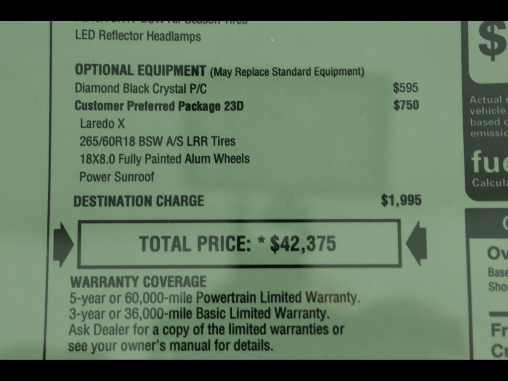 AVAILABLE PROGRESSIVE SERVICE RENTAL ** Diamond Black Crystal Pearlcoat 2025 Jeep Grand Cherokee Laredo X 4WD 8-Speed Automatic 3.6L V6 24V VVT ** Adaptive Cruise Control, ** All-Wheel Drive, ** Alloy Wheels / Premium Wheels, ** Apple CarPlay/Android Auto, ** Backup Camera, ** Blind Spot Monitor, ** Cross Traffic Alert, ** Cruise Control, ** Four-Wheel Drive / 4X4, ** Keyless Entry, ** Lane Departure Warning, ** Panoramic Roof / Sunroof, ** Premium Sound System / Premium Audio, ** Satellite Radio, ** Stability Control, ** Steering Wheel Controls, ** Sunroof/Moonroof, ** USB Port, ** WiFi Hotspot, 4-Wheel Disc Brakes, 6 Speakers, ABS brakes, Air Conditioning, AM/FM radio: SiriusXM, Anti-whiplash front head restraints, Automatic temperature control, Brake assist, Cloth Seats, Compass, Delay-off headlights, Driver vanity mirror, Dual front impact airbags, Dual front side impact airbags, Electronic Stability Control, Emergency communication system, Four wheel independent suspension, Front Bucket Seats, Front Center Armrest w/Storage, Front dual zone A/C, Front reading lights, Fully automatic headlights, Heated door mirrors, Illuminated entry, Knee airbag, Laredo X, Low tire pressure warning, Occupant sensing airbag, Outside temperature display, Overhead console, Panic alarm, ParkView Rear Back-Up Camera, Passenger vanity mirror, Power door mirrors, Power driver seat, Power Sunroof, Power windows, Quick Order Package 23D Laredo X, Radio data system, Radio: Uconnect 5 w/8.4" Display, Rear reading lights, Rear window defroster, Rear window wiper, Remote keyless entry, Security system, Speed control, Speed-Sensitive Wipers, Split folding rear seat, Steering wheel mounted audio controls, Tachometer, Telescoping steering wheel, Tilt steering wheel, Traction control, Trip computer, Variably intermittent wipers, Voltmeter, Wheels: 18" x 8" Fully Painted Aluminum.