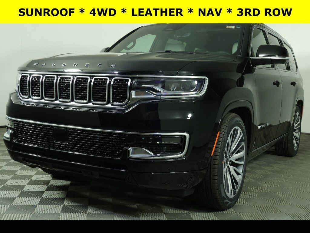 AVAILABLE PROGRESSIVE SERVICE RENTAL ** Diamond Black Crystal Pearlcoat 2025 Jeep Wagoneer Series II 4WD 8-Speed Automatic 3.0L I6 ** Adaptive Cruise Control, ** Alloy Wheels / Premium Wheels, ** Apple CarPlay/Android Auto, ** Automatic Emergency Braking, ** Backup Camera, ** Blind Spot Monitor, ** Cooled Seats, ** Cross Traffic Alert, ** Cruise Control, ** Heated Seats, ** Heated Steering Wheel, ** Keyless Entry, ** Keyless Start, ** Lane Departure Warning, ** Leather Seats, ** Navigation System, ** Panoramic Roof / Sunroof, ** Premium Sound System / Premium Audio, ** Rear Cross Traffic Alert, ** Remote Start, ** Satellite Radio, ** Stability Control, ** Steering Wheel Controls, ** Sunroof/Moonroof, ** Third Row Seating / 3rd Row Seating, ** USB Port, ** WiFi Hotspot, ** All-Wheel Drive, ** Four-Wheel Drive / 4X4, 10 Speakers, 3 Panel Sunroof, 3rd row seats: bench, 4-Wheel Disc Brakes, 60/40 Power Recline 3rd Row Seat, ABS brakes, Air Conditioning, All-Season Floor Mats, AM/FM radio: SiriusXM with 360L, Anti-whiplash front head restraints, Apple CarPlay/Android Auto, Audio memory, Auto Adjust In Reverse Exterior Mirrors, Auto High Beam Headlamp Control, Auto Power-Folding Mirrors, Auto-dimming Rear-View mirror, Auto-leveling suspension, Automatic temperature control, Brake assist, Cargo Tray, Compass, Delay-off headlights, Driver vanity mirror, Drowsy Driver Detection, Dual front impact airbags, Dual front side impact airbags, Electronic Stability Control, Emergency communication system: Jeep Connect, Exterior Mirrors Approach Lamps, Exterior Mirrors w/Memory, Four wheel independent suspension, Front Bucket Seats, Front Center Armrest w/Storage, Front dual zone A/C, Front fog lights, Front reading lights, Fully automatic headlights, Garage door transmitter, Genuine wood dashboard insert, Heated Exterior Mirrors, Heated front seats, Heated rear seats, Heated steering wheel, Illuminated entry, Intersection Collision Assist System, Knee airbag, Leather Trimmed Bucket Seats, Low tire pressure warning, Memory seat, MOPAR Interior Protection Package, Navigation System, Occupant sensing airbag, Outside temperature display, Overhead console, P&P Park & Unpark Assist w/Stop System, Panic alarm, ParkView Rear Back-Up Camera, Passenger seat mounted armrest, Power Deployable Running Boards, Power door mirrors, Power driver seat, Power Liftgate, Power passenger seat, Power windows, Quadra-Lift Air Suspension, Quick Order Package 25L Limited, Radio data system, Radio: Uconnect 5 Nav w/10.1" Display, Rain sensing wipers, Rear air conditioning, Rear dual zone A/C, Rear window defroster, Rear window wiper, Remote keyless entry, Security system, Semi Active Damping, Side Distance Warning, Speed control, Speed-sensing steering, Speed-Sensitive Wipers, Split folding rear seat, Steering wheel memory, Steering wheel mounted audio controls, Surround View Camera System, Tachometer, Telescoping steering wheel, Tilt steering wheel, Traction control, Traffic Sign Recognition, Trip computer, Turn signal indicator mirrors, Variably intermittent wipers, Ventilated front seats, Voltmeter, Wheels: 22" x 9.0" Premium 4 Aluminum.