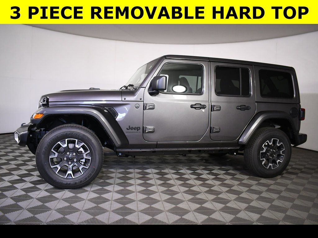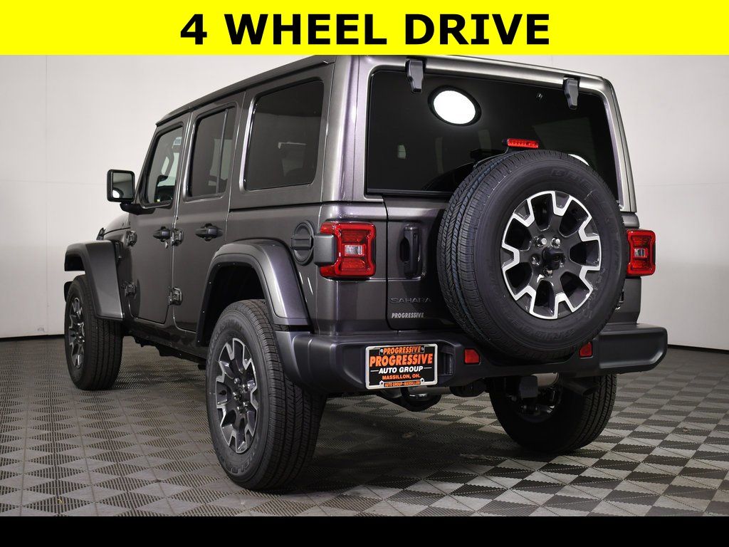 AVAILABLE PROGRESSIVE SERVICE RENTAL ** Granite Crystal Metallic Clearcoat 2025 Jeep Wrangler Sahara 4WD 8-Speed Automatic 3.6L V6 24V VVT ** Adaptive Cruise Control, ** All-Wheel Drive, ** Alloy Wheels / Premium Wheels, ** Apple CarPlay/Android Auto, ** Backup Camera, ** Cross Traffic Alert, ** Cruise Control, ** Four-Wheel Drive / 4X4, ** Heated Seats, ** Heated Steering Wheel, ** Keyless Entry, ** Keyless Start, ** Navigation System, ** Premium Sound System / Premium Audio, ** Remote Start, ** Satellite Radio, ** Stability Control, ** Steering Wheel Controls, ** Tow Hitch / Trailer Hitch, ** USB Port, ** WiFi Hotspot, 12.3" Touchscreen Display, 4-Wheel Disc Brakes, 4G LTE Wi-Fi Hot Spot, 7 & 4 Pin Wiring Harness, ABS brakes, Air Conditioning, Alpine Premium Audio System, AM/FM radio: SiriusXM, Apple CarPlay, Apple CarPlay/Android Auto, Auto-Dimming Rear-View Mirror, Automatic temperature control, Aux Battery, Auxiliary Switches, Brake assist, Class II Receiver Hitch, Compass, Connected Travel & Traffic Services, Connectivity - US/Canada, Delay-off headlights, Driver vanity mirror, Dual front impact airbags, Dual front side impact airbags, Electronic Stability Control, Emergency communication system: Jeep Connect, Freedom Panel Storage Bag, Front Bucket Seats, Front Center Armrest w/Storage, Front dual zone A/C, Front fog lights, Front reading lights, Fully automatic headlights, Google Android Auto, GPS Navigation, HD Radio, Heated door mirrors, Heated front seats, Heated steering wheel, Heavy Duty Suspension w/Gas Shocks, Illuminated entry, Integrated Center Stack Radio, Integrated Off-Road Camera, Integrated roll-over protection, Integrated Voice Command w/Bluetooth, Low tire pressure warning, MOPAR All-Weather Floor Mats, MOPAR Hardtop Headliner, Non-Lock Fuel Cap w/o Discriminator, Occupant sensing airbag, Outside temperature display, Panic alarm, ParkView Rear Back-Up Camera, Passenger vanity mirror, Power Adjust 8-Way Driver Seat, Power Adjust 8-Way Front Passenger Seat, Power door mirrors, Power windows, Quick Order Package 24G Sahara, Radio: Uconnect 5 Nav w/12.3" Display, Rear reading lights, Rear Window Defroster, Rear Window Wiper/Washer, Remote keyless entry, Security system, SiriusXM Radio Service, SiriusXM w/360L, Speed control, Steering wheel mounted audio controls, Tachometer, Technology Group, Telescoping steering wheel, Tilt steering wheel, Traction control, Trailer Tow & Aux Switch Group, Trip computer, Universal Garage Door Opener, Variably intermittent wipers, Voltmeter, Wheels: 18" x 7.5" Machine/Painted Gray.