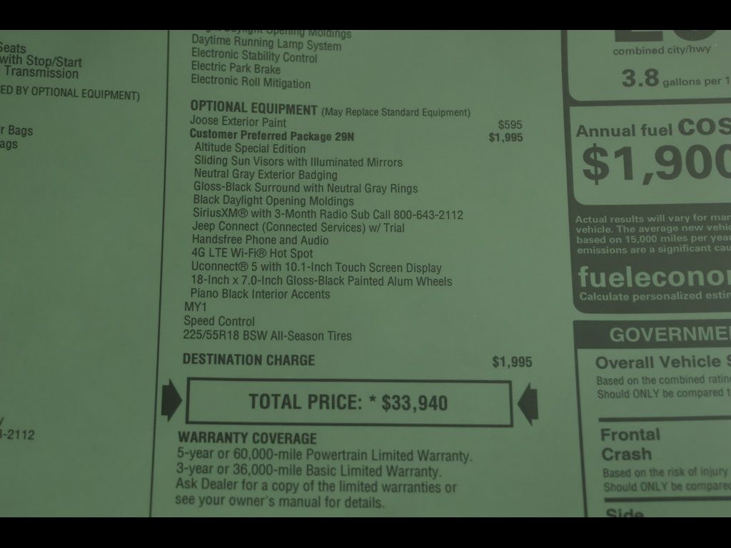 Joose 2026 Jeep Compass Latitude 4WD 8-Speed Automatic 2.0L I4 DOHC ** All-Wheel Drive, ** Alloy Wheels / Premium Wheels, ** Apple CarPlay/Android Auto, ** Backup Camera, ** Blind Spot Monitor, ** Cross Traffic Alert, ** Cruise Control, ** Four-Wheel Drive / 4X4, ** Heated Seats, ** Heated Steering Wheel, ** Keyless Entry, ** Keyless Start, ** Lane Departure Warning, ** Premium Sound System / Premium Audio, ** Rear Cross Traffic Alert, ** Remote Start, ** Satellite Radio, ** Stability Control, ** Steering Wheel Controls, ** USB Port, ** WiFi Hotspot, 4-Wheel Disc Brakes, 4G LTE Wi-Fi Hot Spot, 6 Speakers, ABS brakes, Air Conditioning, Altitude Special Edition, AM/FM radio: SiriusXM, Auto High-beam Headlights, Automatic temperature control, Bluetooth Handsfree Phone and Audio, Brake assist, Compass, Delay-off headlights, Driver vanity mirror, Dual front impact airbags, Dual front side impact airbags, Electronic Stability Control, Emergency communication system: SiriusXM Guardian, Four wheel independent suspension, Front anti-roll bar, Front Bucket Seats, Front Center Armrest w/Storage, Front fog lights, Front reading lights, Fully automatic headlights, Global Telematics Box Module, Heated door mirrors, Heated front seats, Heated steering wheel, Illuminated entry, Knee airbag, Leather Shift Knob, Leather steering wheel, Low tire pressure warning, Occupant sensing airbag, Outside temperature display, Overhead console, Panic alarm, ParkView Rear Back-Up Camera, Passenger vanity mirror, Piano Black Interior Accents, Power door mirrors, Power windows, Premium audio system: UConnect 5, Premium Cloth/Vinyl Bucket Seats, Quick Order Package 29N Altitude, Rear seat center armrest, Rear window defroster, Rear window wiper, Remote keyless entry, Security system, SiriusXM Satellite Radio, Sliding Sun Visors with Illuminated Mirrors, Speed control, Split folding rear seat, Steering wheel mounted audio controls, Tachometer, Telescoping steering wheel, Tilt steering wheel, Traction control, Trip computer, Variably intermittent wipers, Wheels: 18" x 7" Gloss Black Painted Aluminum.