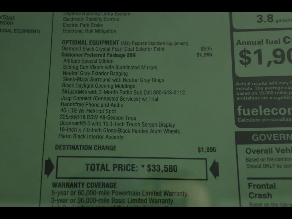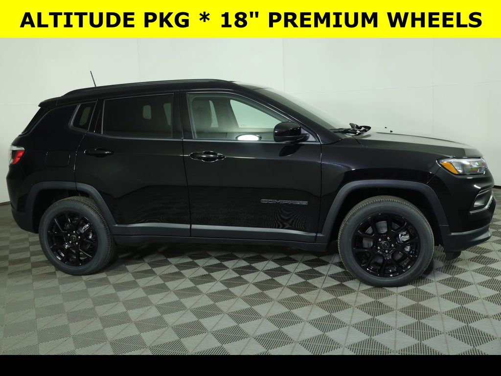 PROGRESSIVE SERVICE RENTAL ** Diamond Black Crystal Pearlcoat 2026 Jeep Compass Latitude 4WD 8-Speed Automatic 2.0L I4 DOHC ** All-Wheel Drive, ** Alloy Wheels / Premium Wheels, ** Apple CarPlay/Android Auto, ** Automatic Emergency Braking, ** Backup Camera, ** Blind Spot Monitor, ** Cross Traffic Alert, ** Cruise Control, ** Four-Wheel Drive / 4X4, ** Heated Seats, ** Heated Steering Wheel, ** Keyless Entry, ** Keyless Start, ** Lane Departure Warning, ** Premium Sound System / Premium Audio, ** Rear Cross Traffic Alert, ** Remote Start, ** Satellite Radio, ** Stability Control, ** Steering Wheel Controls, ** USB Port, ** WiFi Hotspot, 10.1" Touchscreen Display, 4-Wheel Disc Brakes, 4G LTE Wi-Fi Hot Spot, ABS brakes, Air Conditioning, Altitude Special Edition, AM/FM radio: SiriusXM, Auto High-beam Headlights, Automatic temperature control, Bluetooth Handsfree Phone and Audio, Brake assist, Compass, Delay-off headlights, Driver vanity mirror, Dual front impact airbags, Dual front side impact airbags, Electronic Stability Control, Emergency communication system: SiriusXM Guardian, Four wheel independent suspension, Front Bucket Seats, Front Center Armrest w/Storage, Front fog lights, Front reading lights, Fully automatic headlights, Global Telematics Box Module, Heated door mirrors, Heated front seats, Heated steering wheel, Illuminated entry, Knee airbag, Leather Shift Knob, Leather steering wheel, Low tire pressure warning, Occupant sensing airbag, Outside temperature display, Overhead console, Panic alarm, ParkView Rear Back-Up Camera, Passenger vanity mirror, Power door mirrors, Power windows, Premium audio system: UConnect 5, Premium Cloth/Vinyl Bucket Seats, Quick Order Package 29N Altitude, Rear seat center armrest, Rear window defroster, Rear window wiper, Remote keyless entry, Security system, SiriusXM Satellite Radio, Sliding Sun Visors with Illuminated Mirrors, Speed control, Split folding rear seat, Steering wheel mounted audio controls, Tachometer, Telescoping steering wheel, Tilt steering wheel, Traction control, Trip computer, Variably intermittent wipers, Wheels: 18" x 7" Gloss Black Painted Aluminum.