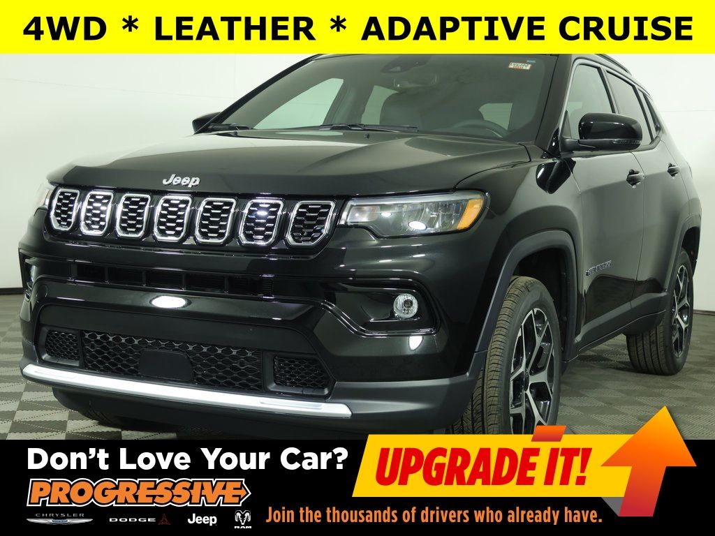 PROGRESSIVE SERVICE RENTAL ** diamond black crystal pearlcoat 2026 Jeep Compass Limited 4WD 8-Speed Automatic 2.0L I4 DOHC ** Adaptive Cruise Control, ** All-Wheel Drive, ** Alloy Wheels / Premium Wheels, ** Apple CarPlay/Android Auto, ** Backup Camera, ** Blind Spot Monitor, ** Cross Traffic Alert, ** Cruise Control, ** Four-Wheel Drive / 4X4, ** Heated Seats, ** Heated Steering Wheel, ** Keyless Entry, ** Keyless Start, ** Lane Departure Warning, ** Leather Seats, ** Premium Sound System / Premium Audio, ** Rear Cross Traffic Alert, ** Remote Start, ** Satellite Radio, ** Stability Control, ** Steering Wheel Controls, ** USB Port, ** WiFi Hotspot, 10.1" Touchscreen Display, 4-Wheel Disc Brakes, 4G LTE Wi-Fi Hot Spot, 6 Speakers, ABS brakes, Air Conditioning, AM/FM radio: SiriusXM, Auto High-beam Headlights, Auto-dimming Rear-View mirror, Automatic temperature control, Brake assist, Compass, Delay-off headlights, Driver vanity mirror, Dual front impact airbags, Dual front side impact airbags, Electronic Stability Control, Emergency communication system: SiriusXM Guardian, Four wheel independent suspension, Front Bucket Seats, Front Center Armrest w/Storage, Front dual zone A/C, Front fog lights, Front reading lights, Fully automatic headlights, Global Telematics Box Module, Heated door mirrors, Heated front seats, Heated steering wheel, Illuminated entry, Knee airbag, Leather Shift Knob, Leather steering wheel, Leatherette Seats, Low tire pressure warning, Occupant sensing airbag, Outside temperature display, Overhead console, Panic alarm, ParkView Rear Back-Up Camera, Passenger vanity mirror, Power door mirrors, Power driver seat, Power Liftgate, Power windows, Radio: Uconnect 5 with 10.1" Display, Rain sensing wipers, Rear seat center armrest, Rear window defroster, Rear window wiper, Remote keyless entry, Security system, SiriusXM Guardian - Included Trail (B), SiriusXM Radio Service, Speed control, Split folding rear seat, Steering wheel mounted audio controls, Tachometer, Telescoping steering wheel, Tilt steering wheel, Traction control, Trip computer, Turn signal indicator mirrors, Variably intermittent wipers, Wheels: 18" x 7" Painted Diamond Cut Aluminum.