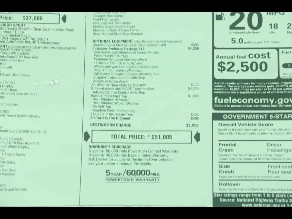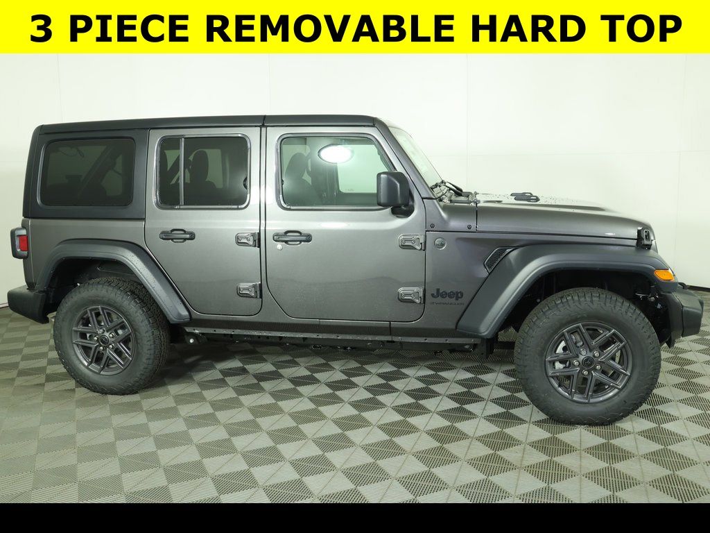 Granite Crystal Metallic Clearcoat 2026 Jeep Wrangler Sport S 4WD 8-Speed Automatic 3.6L V6 24V VVT ** Adaptive Cruise Control, ** All-Wheel Drive, ** Alloy Wheels / Premium Wheels, ** Apple CarPlay/Android Auto, ** Backup Camera, ** Four-Wheel Drive / 4X4, ** Keyless Entry, ** Premium Sound System / Premium Audio, ** Satellite Radio, ** Stability Control, ** Steering Wheel Controls, ** USB Port, ** WiFi Hotspot, 4-Wheel Disc Brakes, 8 Speakers, ABS brakes, Advanced Brake Assist, Air Conditioning, AM/FM radio: SiriusXM with 360L, Apple CarPlay/Android Auto, Automatic Headlamps, Aux Battery, Black 3-Piece Hard Top, Brake assist, Cloth Low-Back Bucket Seats, Compass, Corning Gorilla Glass, Deep Tint Sunscreen Windows, Delay-off headlights, Driver vanity mirror, Dual front impact airbags, Dual front side impact airbags, Electronic Stability Control, Enhanced Adaptive Cruise Control, Freedom Panel Storage Bag, Front fog lights, Front reading lights, Full Speed Forward Collision Warning Plus, Illuminated entry, Integrated roll-over protection, Low tire pressure warning, Outside temperature display, Panic alarm, ParkView Rear Back-Up Camera, Passenger vanity mirror, Power Heated Mirrors, Power windows, Premium Wrapped Steering Wheel, Quick Order Package 24S Sport S, Radio data system, Radio: Uconnect 5 with 12.3" Display, Rear reading lights, Rear Window Defroster, Rear Window Wiper/Washer, Remote keyless entry, Security Alarm, Speed control, Split folding rear seat, Steering wheel mounted audio controls, Sun Visors with Illuminated Vanity Mirrors, Tachometer, Telescoping steering wheel, Tilt steering wheel, Traction control, Trip computer, Variably intermittent wipers, Wheels: 17" x 7.5" Gray.