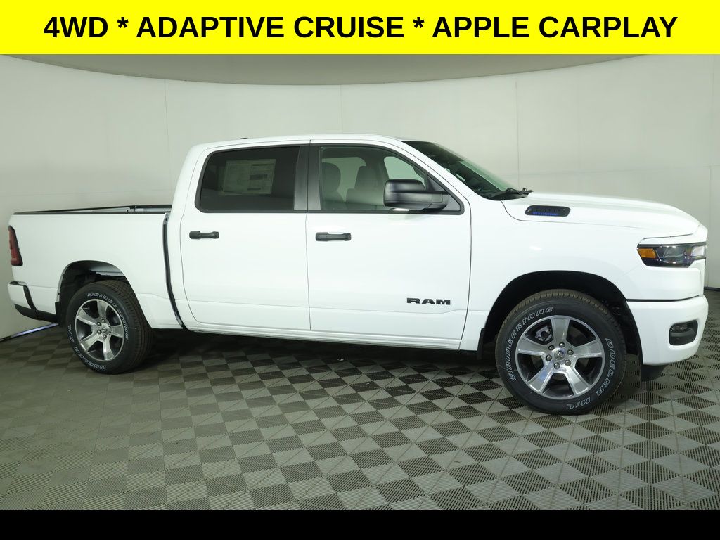 Bright White Clearcoat 2026 Ram 1500 Express 4WD 8-Speed Automatic 3.6L V6 24V VVT ** Adaptive Cruise Control, ** All-Wheel Drive, ** Alloy Wheels / Premium Wheels, ** Apple CarPlay/Android Auto, ** Backup Camera, ** Blind Spot Monitor, ** Cross Traffic Alert, ** Four-Wheel Drive / 4X4, ** Keyless Entry, ** Keyless Start, ** Lane Departure Warning, ** Premium Sound System / Premium Audio, ** Rear Cross Traffic Alert, ** Remote Start, ** Satellite Radio, ** Stability Control, ** Steering Wheel Controls, ** Tow Hitch / Trailer Hitch, ** USB Port, ** WiFi Hotspot, 2nd Row in Floor Storage Bins, 4-Wheel Disc Brakes, 6 Speakers, ABS brakes, Air Conditioning, AM/FM radio, Apple CarPlay/Android Auto, Auto High-beam Headlights, Black Interior Accents, Brake assist, Bridgestone Brand Tires, Cloth Bench Seat, Compass, Dual front impact airbags, Dual front side impact airbags, Electronic Stability Control, Exterior Mirrors with Heating Element, Front and Rear Floor Mats, Front Center Seat Cushion Storage, Front LED Fog Lamps, Front reading lights, Front wheel independent suspension, Global Telematics Box Module, Google Android Auto, GPS Antenna Input, Heated door mirrors, Illuminated entry, Integrated Voice Command with Bluetooth, Low tire pressure warning, Occupant sensing airbag, Outside temperature display, Overhead console, Panic alarm, ParkView Rear Back-Up Camera, Passenger vanity mirror, Power door mirrors, Power windows, Quick Order Package 23D Express, Radio: Uconnect 5 W with 8.4" Display, Rear Folding Seat, Rear Power Sliding Window, Rear step bumper, Remote keyless entry, SiriusXM Radio Service, SiriusXM Satellite Radio, Speed control, Tachometer, Telescoping steering wheel, Tilt steering wheel, Traction control, Tradesman Level 1 Equipment Group, USB Host Flip, Voltmeter, Wheels: 20" x 9.0" Aluminum Polished Painted.